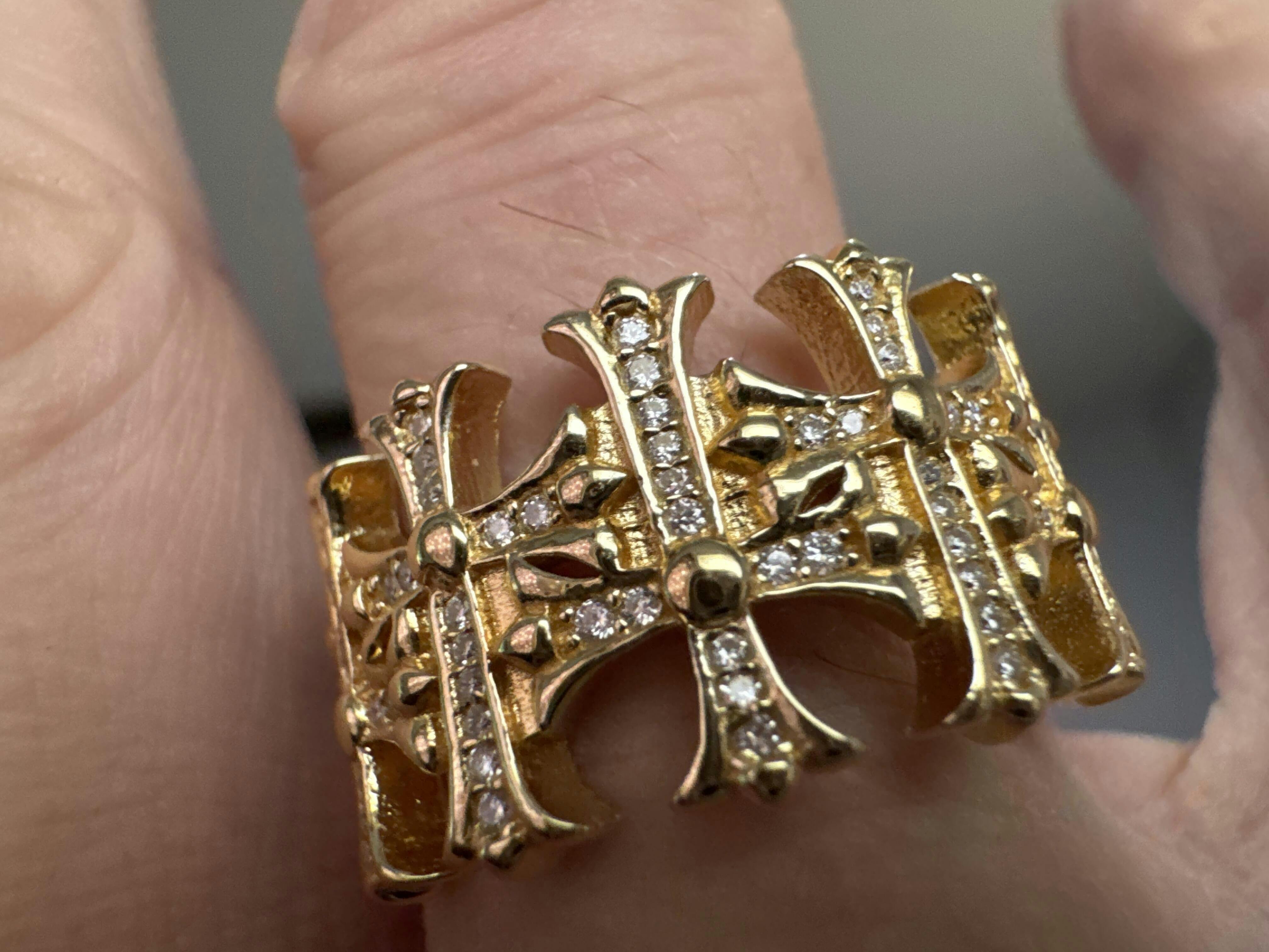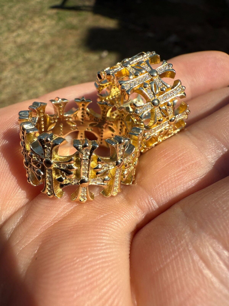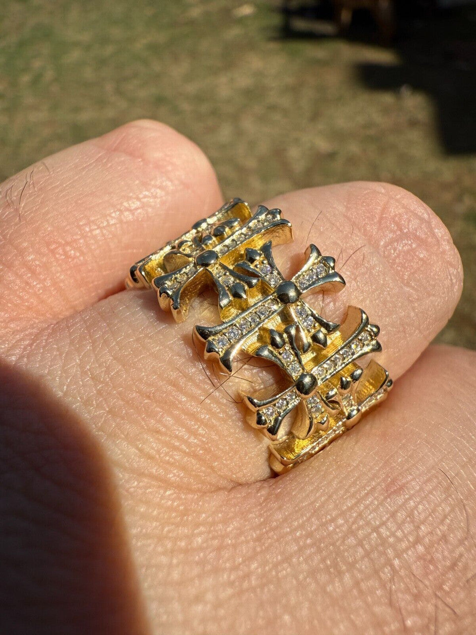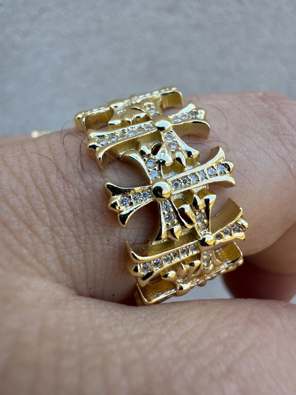 I have to first give a big thanks to Mark and the team for allowing me to return it multiple times. I was way off on the size the first time. Harlem Bling paid shipping both ways and the second one was way too big but a lot closer but this was my fault, I used some print out ring sizer. They again paid shipping both ways for a second return. I now have a size 11 and right before it came I got some plastic ring sizers you can request for free from a few jewelers and I knew the 11 would fit and it did, a 10 1/2 might fit a little more snug but there are no half sizes as it would probably make the seamless design impossible. There’s a little wiggle room but it’s not going to fall off or anything and requires a decent pull to get it over my knuckle. It looks great especially with my Harlem Bling watch! It is stamped 925 too, took me a while to find it but once you see it it’s like finding Waldo, IYKYK. Would hit harder if I had the stones on all sides tennis bracelet 😏