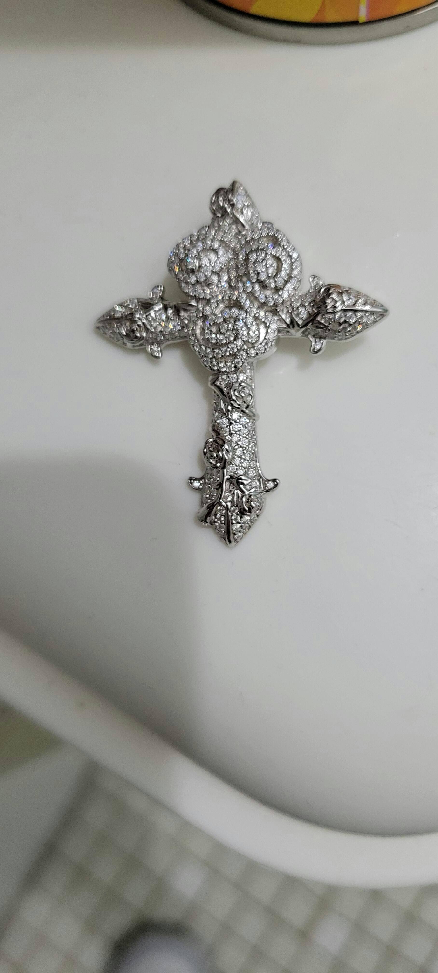 MOISSANITE Crown of Thorns Cross Pendant - 14k Yellow/Rose Gold Vermeil Or 925 Silver - Medium 2"