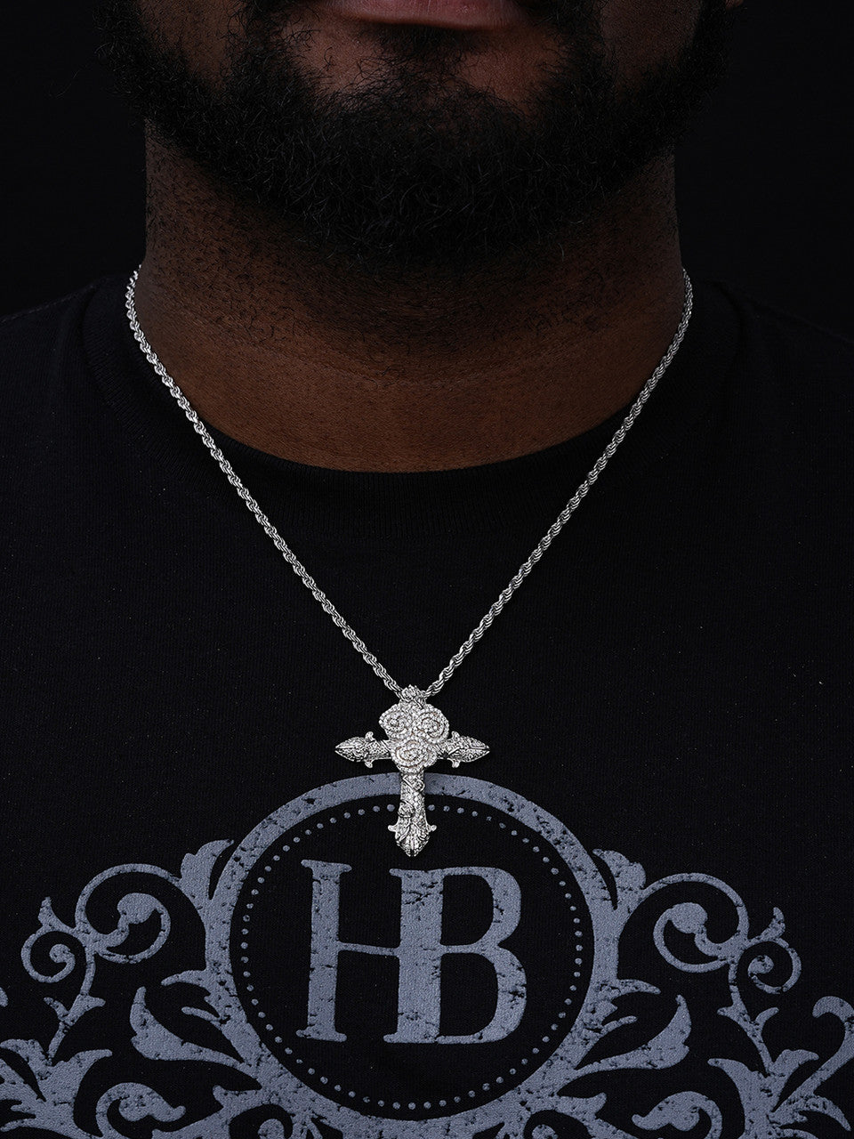 MOISSANITE Crown of Thorns Cross Pendant - 925 Silver - 3 Sizes 1.5"-2.5"