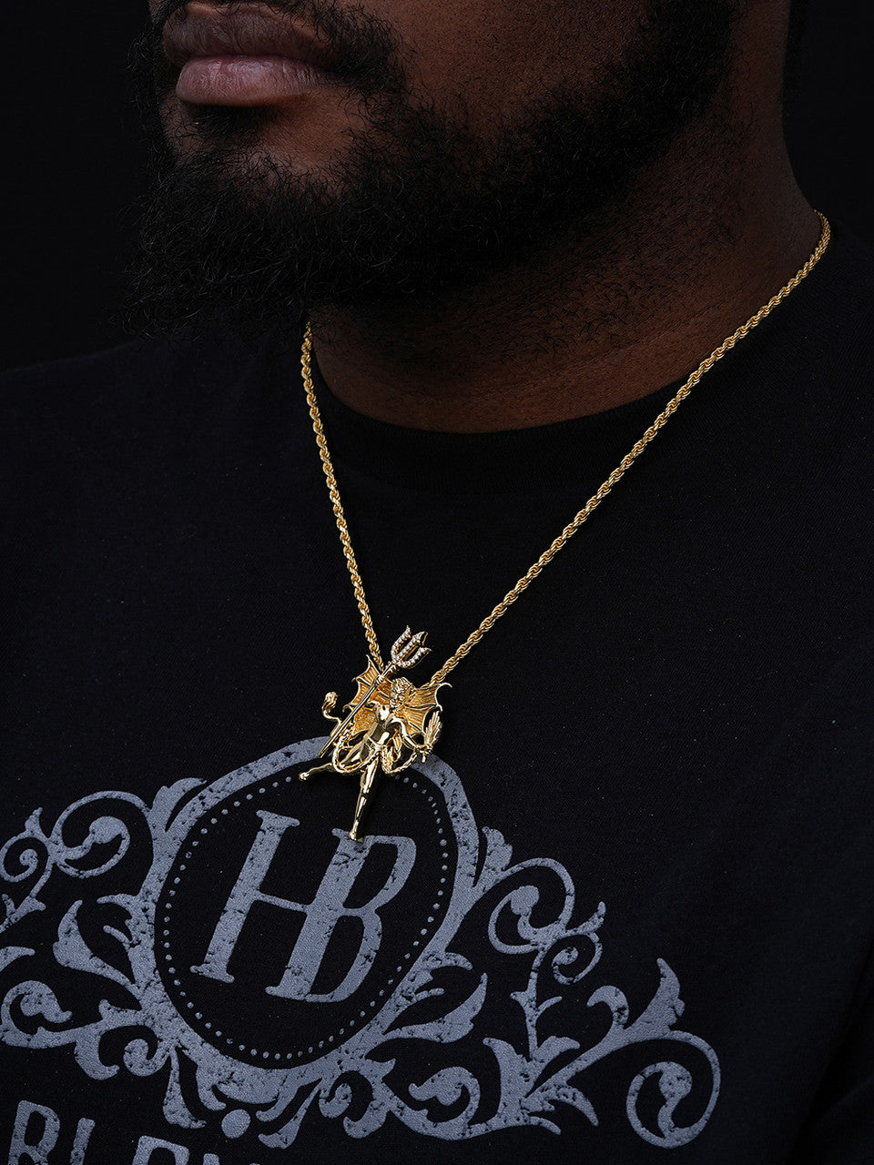 MOISSANITE Devil Satan Pendant - 14k Gold Vermeil 925 Silver - 3 Sizes 1"-2.5"