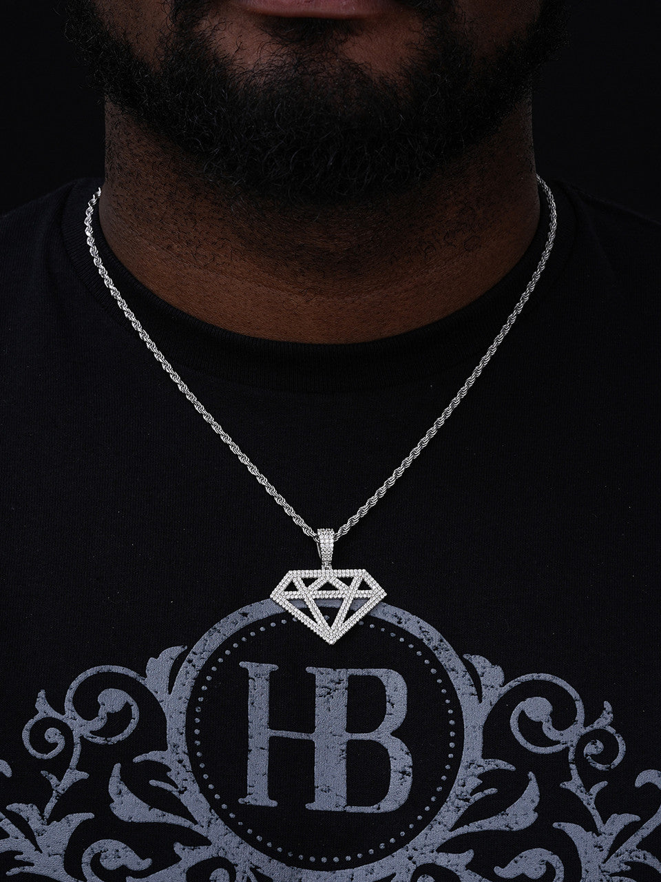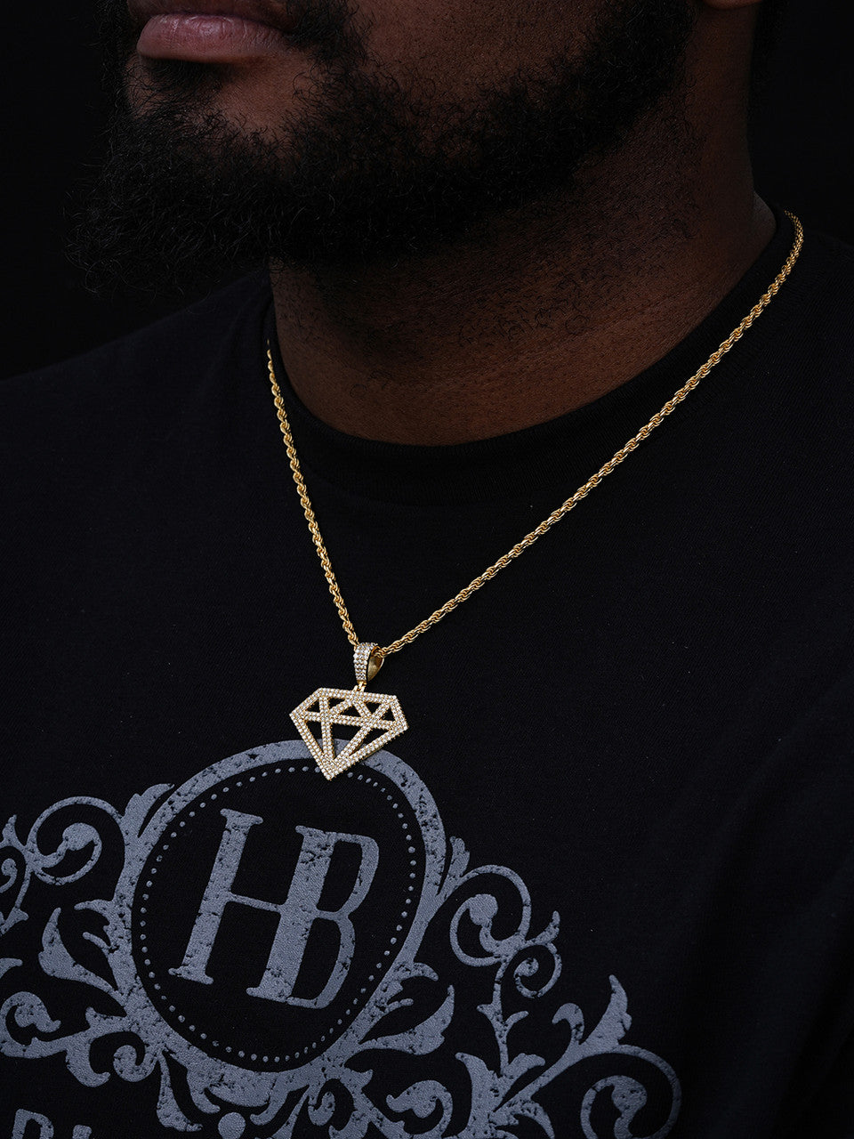 MOISSANITE Diamond Shape Pendant - 14k Gold Vermeil or 925 Silver - Medium 1.75"