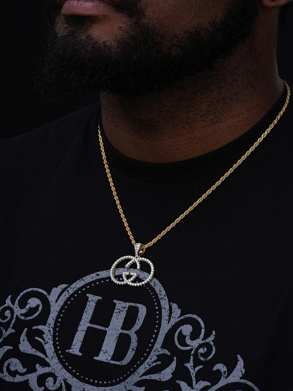 MOISSANITE Double G Iced Out Pendant - 14k Gold Vermeil Or 925 Silver - Small 1.5"