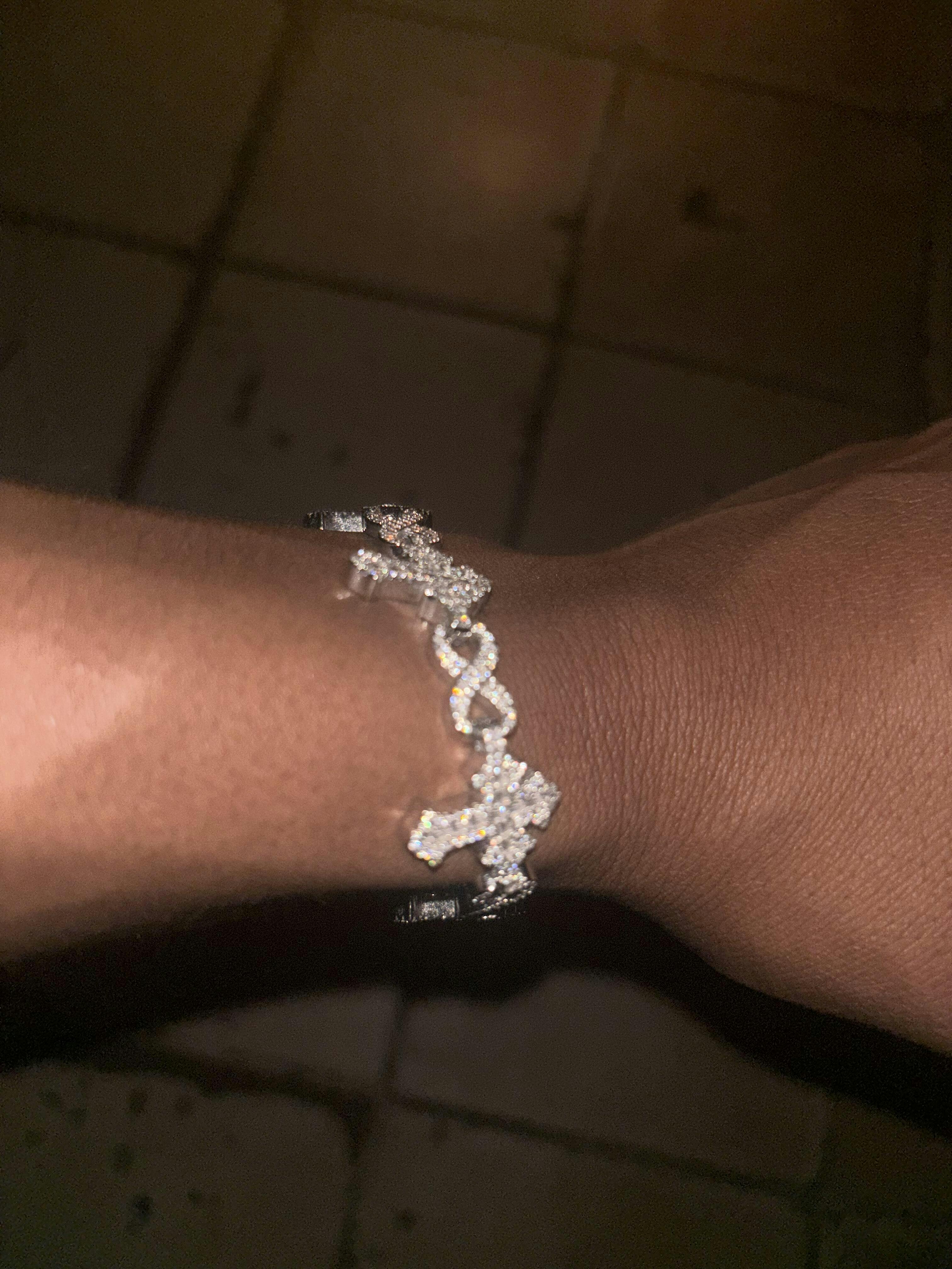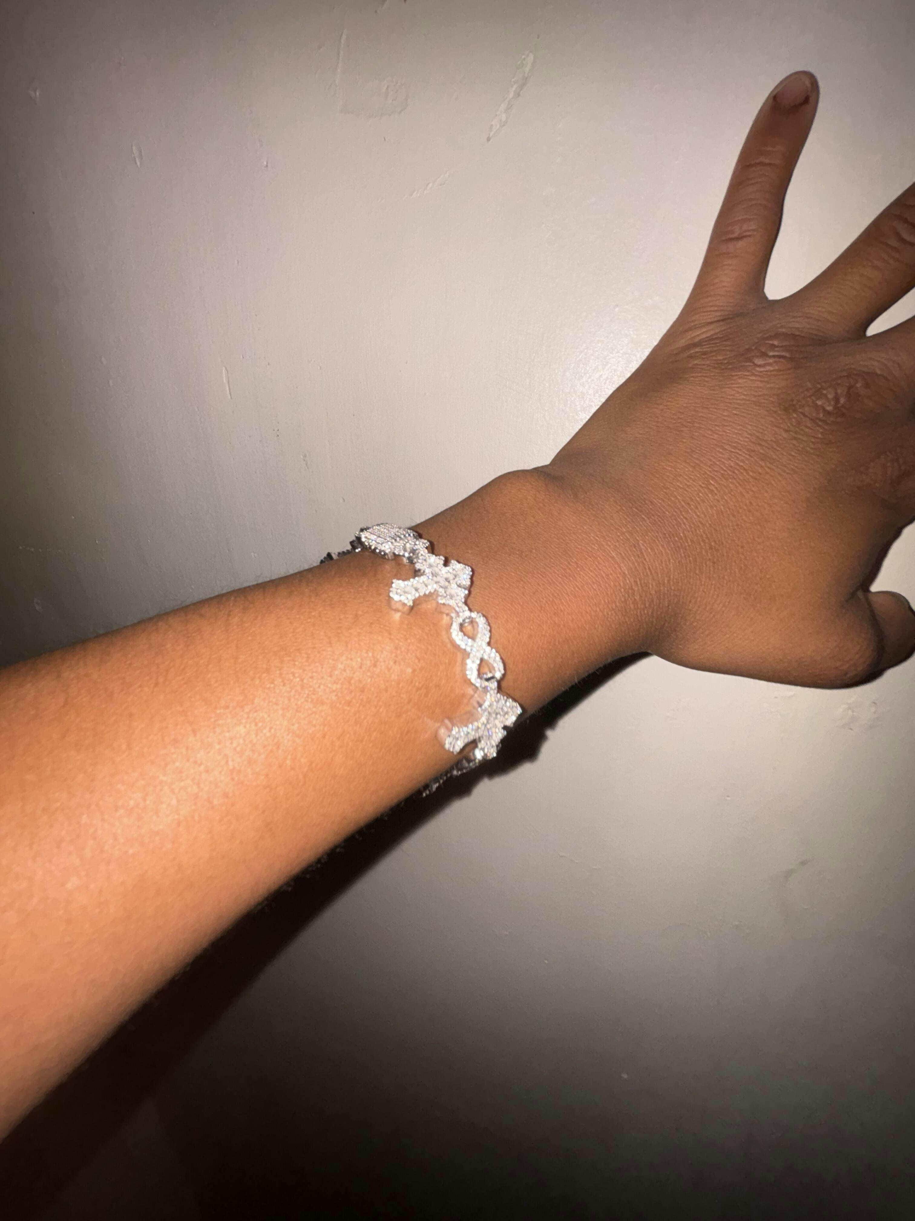 Men's or ladies trending rapper iced gothic infinity cross bracelet set with moissanite