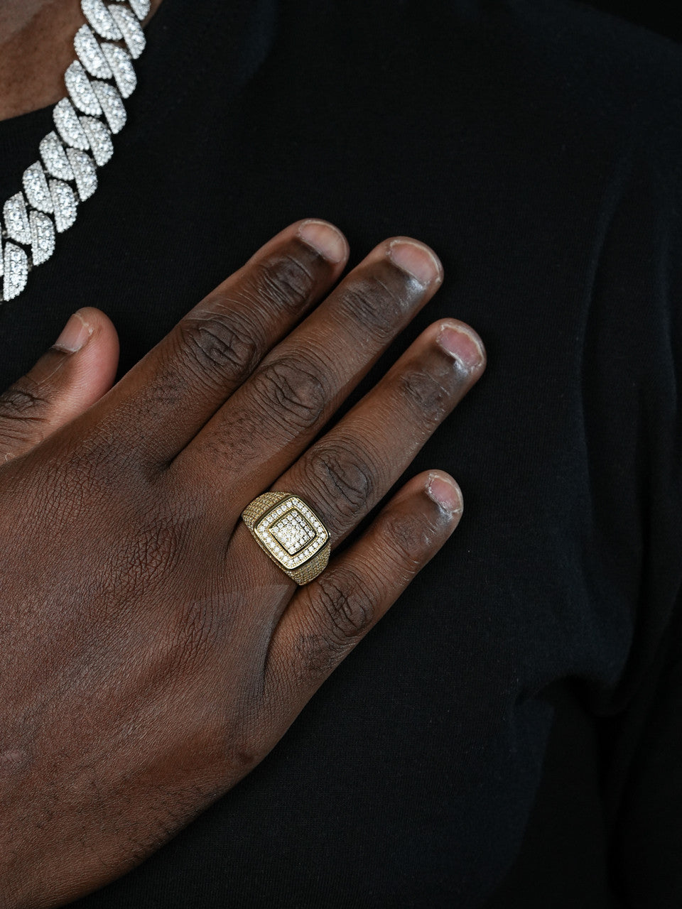 Add a touch of luxury to your wardrobe with the MOISSANITE Everyday Classic Square Iced Out Ring by HarlemBling. Crafted in 14k yellow gold vermeil over 925 silver, this ring features a dazzling square moissanite stone surrounded by sparkling cubic zirconia for a sophisticated and stylish look. The timeless design of this ring makes it perfect for everyday wear or special occasions. Available in sizes 6 to 13, this ring is a must-have for any man looking to elevate his style with high-quality moissanite men's jewelry. Elevate your ring game with HarlemBling.
