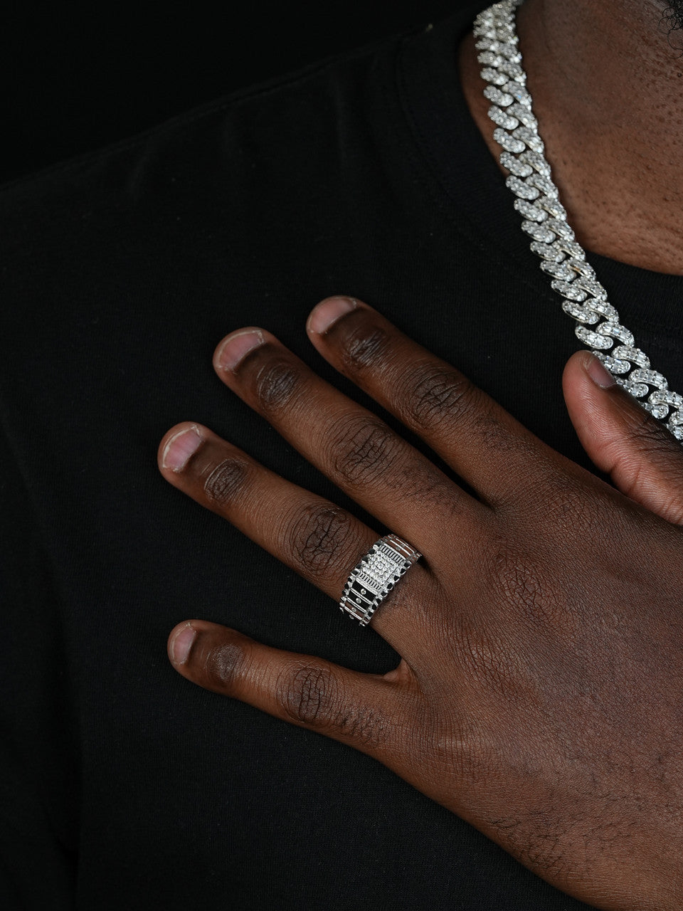 Gorgeous men's square 0.35ct silver nugget moissanite ring