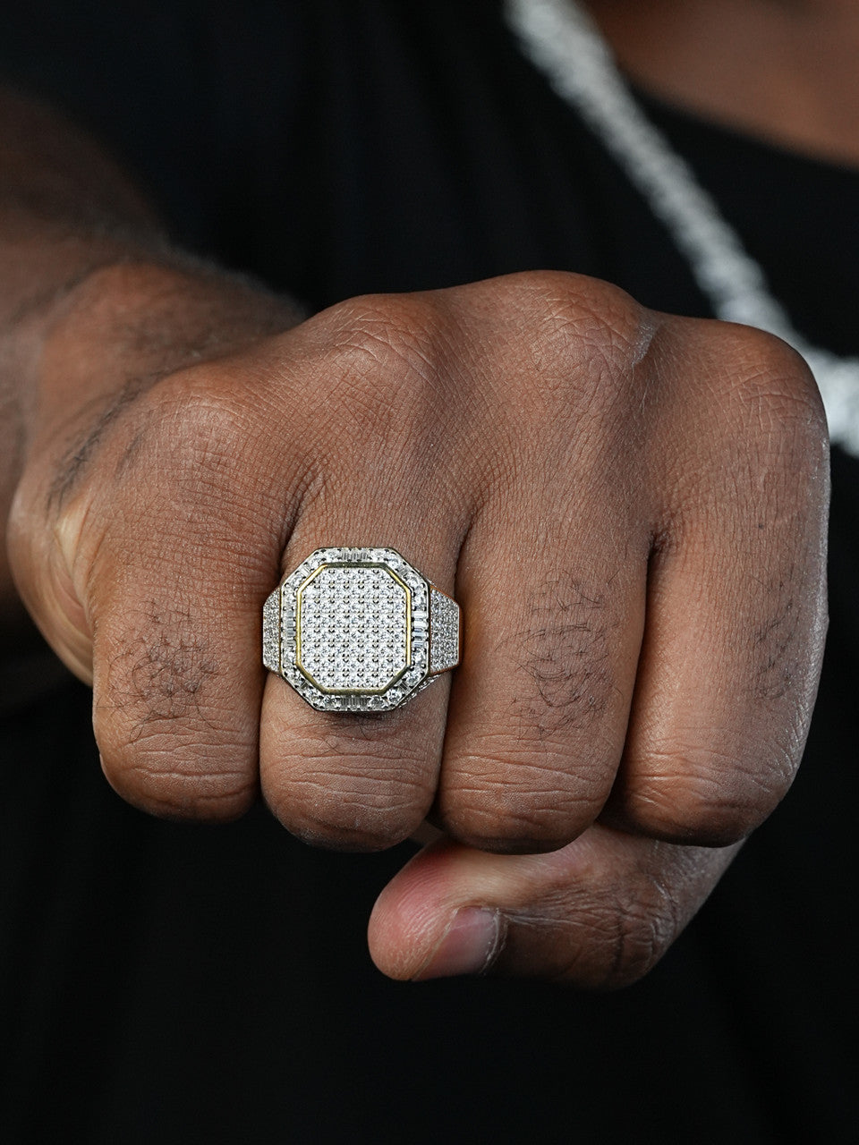 Gorgeous men's large octagonal moissaniteĀ ring