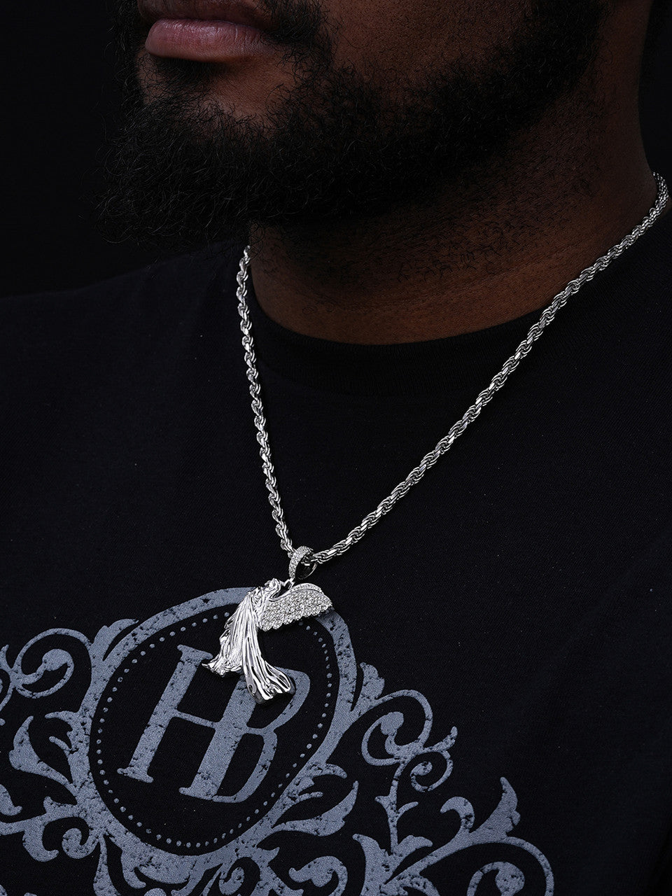 MOISSANITE Guardian Angel Wing Pendant - 925 Silver - 3 Sizes 1"-2.25"