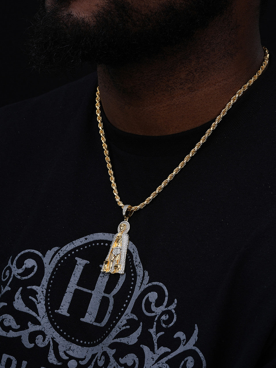 MOISSANITE Iced Saint St Lazarus Pendant - 14k Gold Vermeil Or 925 Silver - Large 2.5"