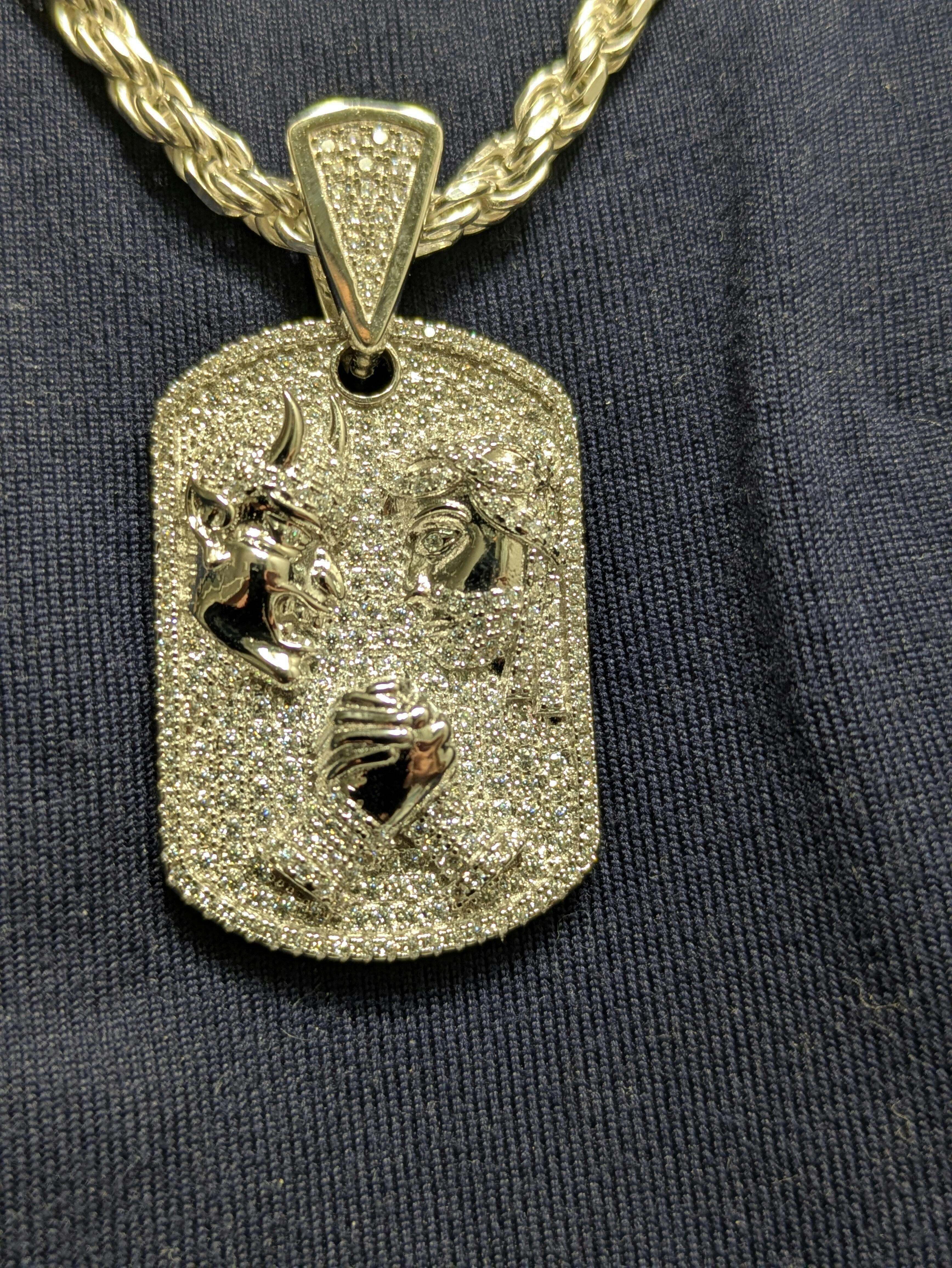MOISSANITE Jesus Arm Wrestling Satan Pendant - 14k Gold Vermeil or 925 Silver - Small 1.5"