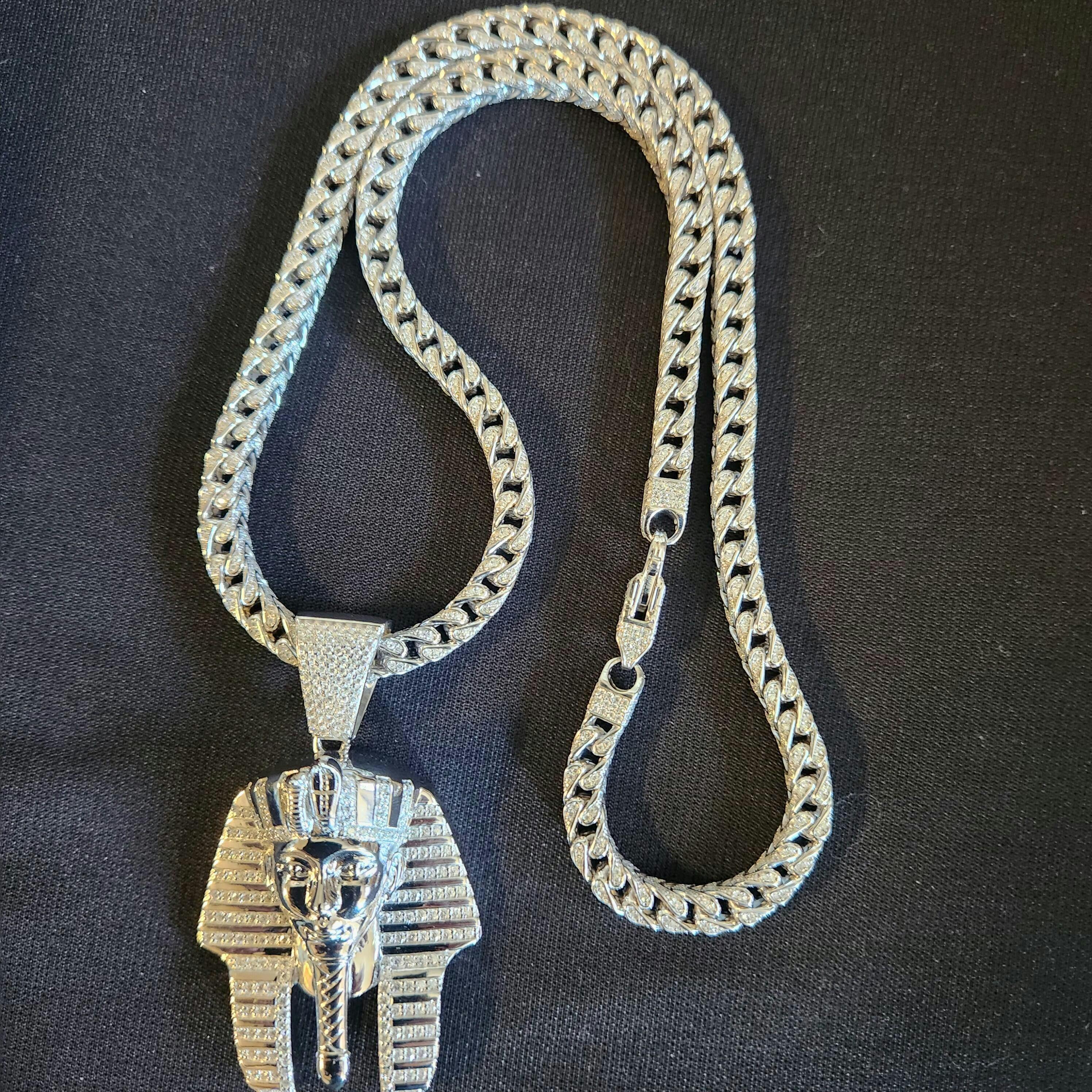 The piece was absolutely amazing. I have been on the fence about buying it for months because of the price. Wow some may argue to 48. Isn’t that much I would disagree. It can definitely be a lot of money especially for when you’re in trying to invest in a piece of jewelry, but my last several transactions with Harlem blading has been amazing. My stuff has always arrived on time and it is never disappointing quality what struck me first was the size of the pendant well, they did see it be a little above 2 inches I wasn’t expecting it when I got it in hand, and what really threw me off was the weight of the pendant well, I did expect to have some weight I wasn’t expecting it due to the hollow back cage and needless to say it is definitely a sturdy piece. I work at my local towns McDonald’s, and it has definitely stood up to the abuse that the grill and a hot kitchen put against it . The plating has a student very well as well. I got mine in the 14 karat yellow gold version and I absolutely love it if you are considering getting this piece, I sincerely recommend it. It is an absolute startin Pizza diesin investment due to the silver wait not to mention it is an IPOP or if you want the best recommended chains in my personal opinion I found an 8 mm 22 inch Cuban and a 3 mm 24 inch Byzantine chain fit well with this piece