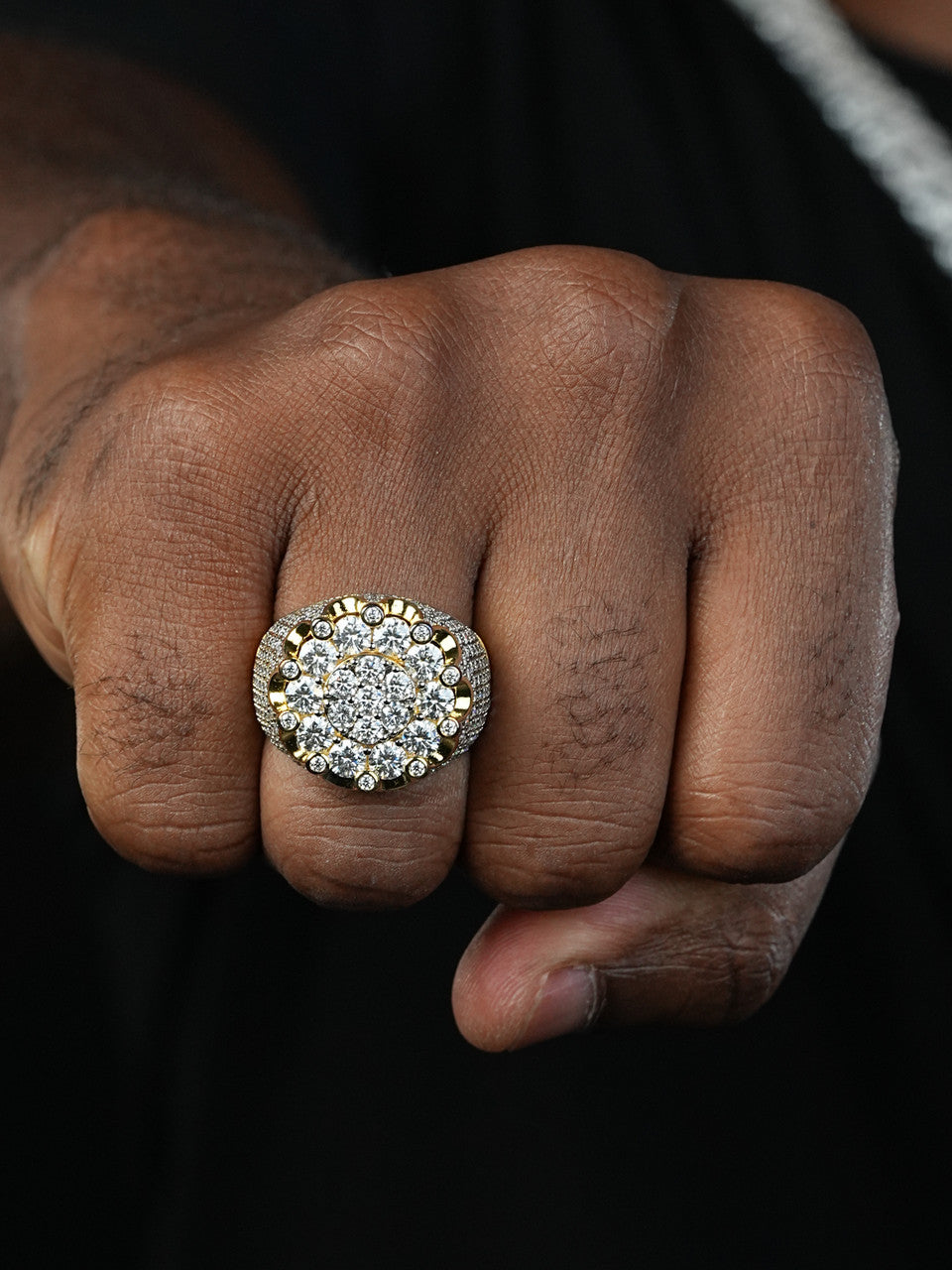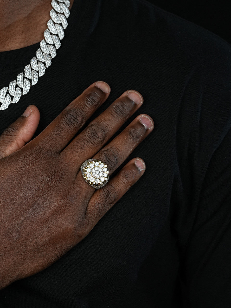 MOISSANITE Large Royal Crown Iced Out Ring - 14k Gold Vermeil 925 Silver