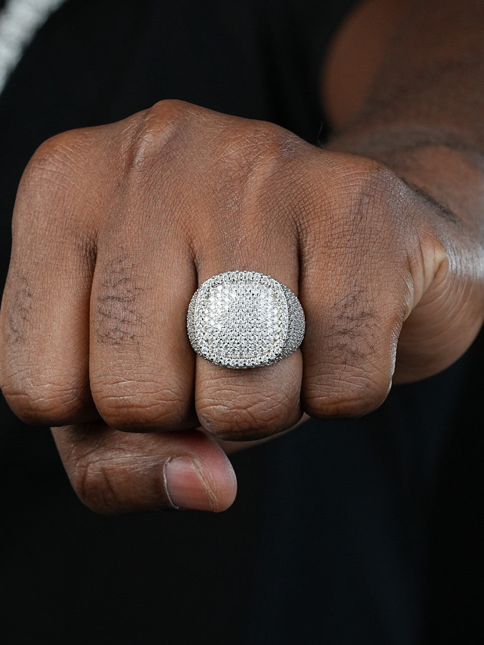 MOISSANITE Ice Giant Square Dome Iced Out Ring - 925 Silver