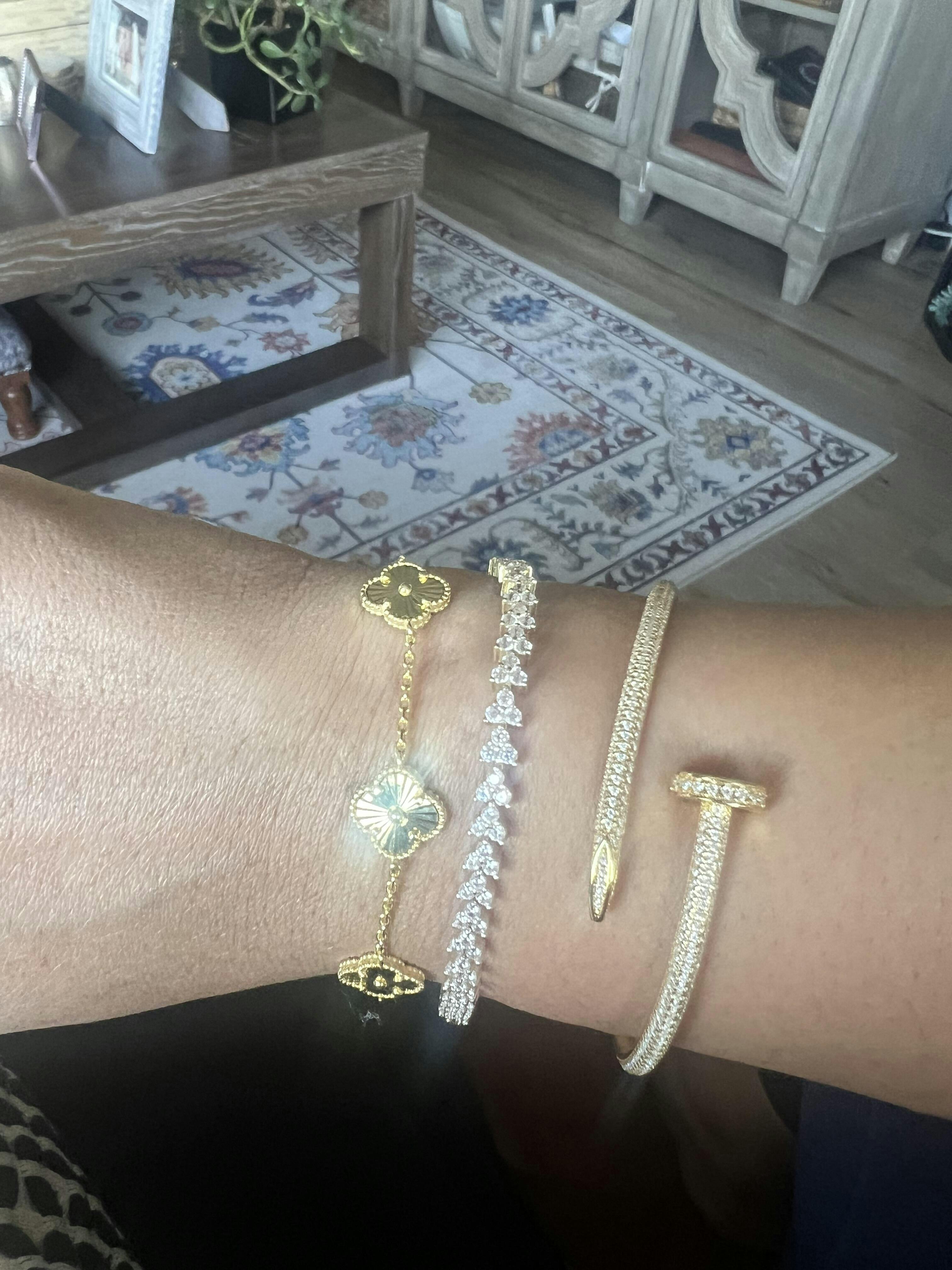 MOISSANITE Nail Bangle Bracelet Iced Out - 14k Gold Vermeil 925 Silver - 6"-7.5"