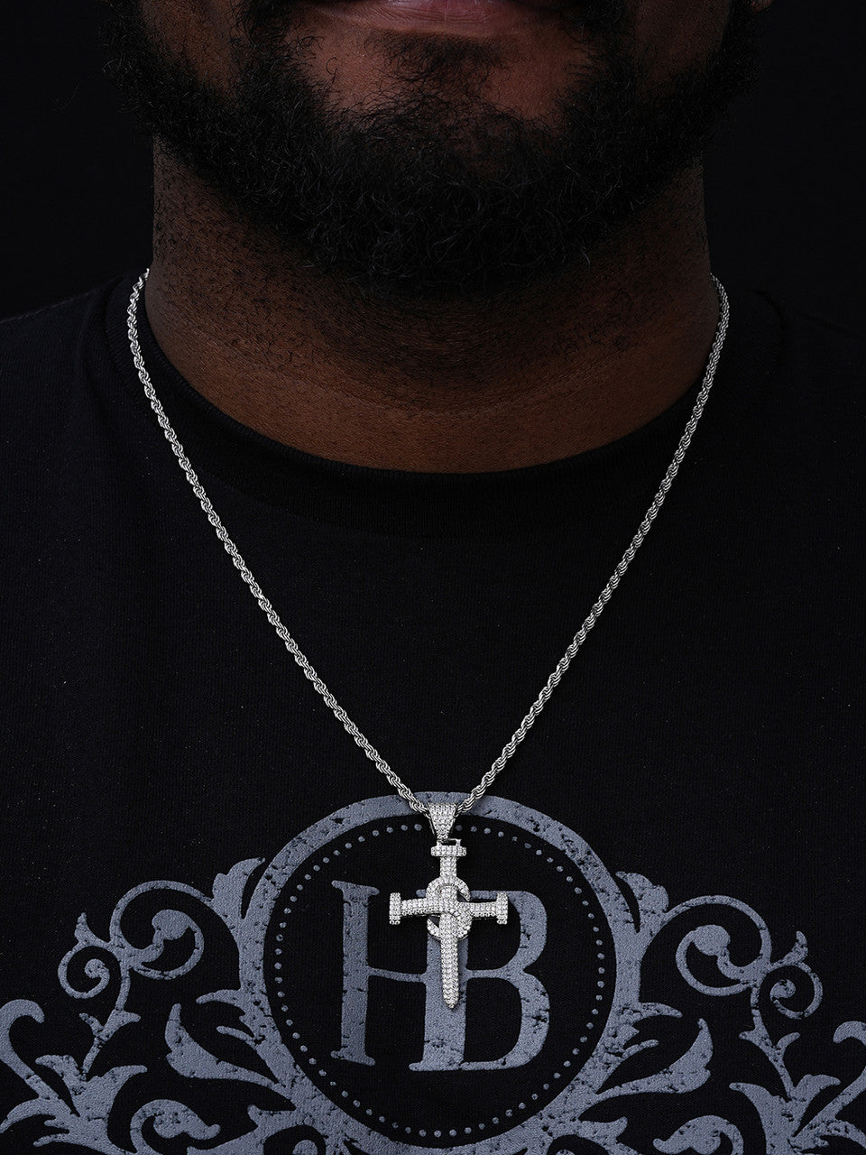 MOISSANITE Nail Cross Pendant - 14k Gold Vermeil Or 925 Silver - Medium 2.25"