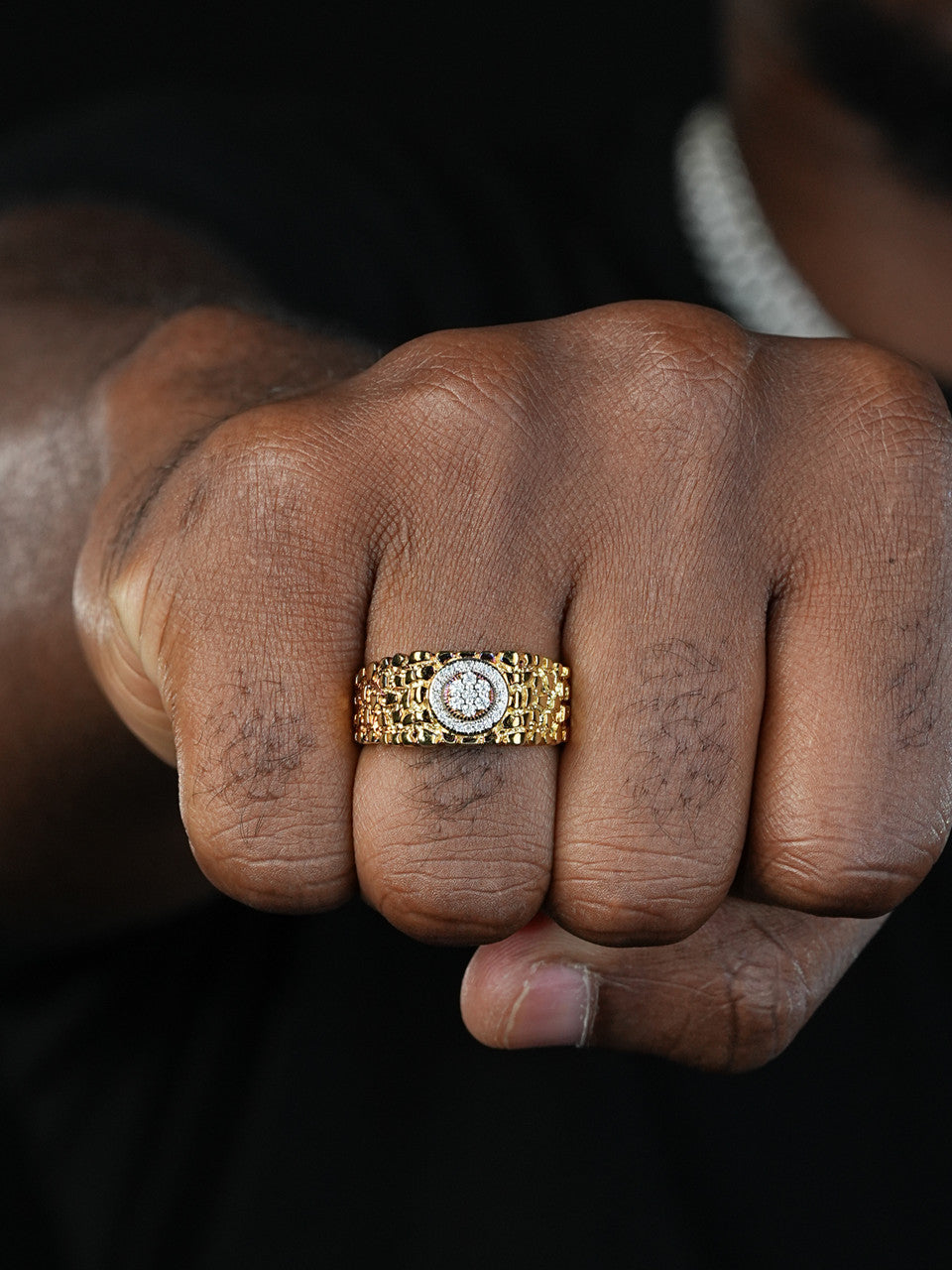 Gorgeous men's square 0.25ct gold nugget moissanite ring