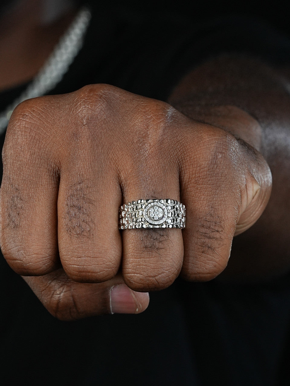 Gorgeous men's square 0.25ct silver nugget moissanite ring