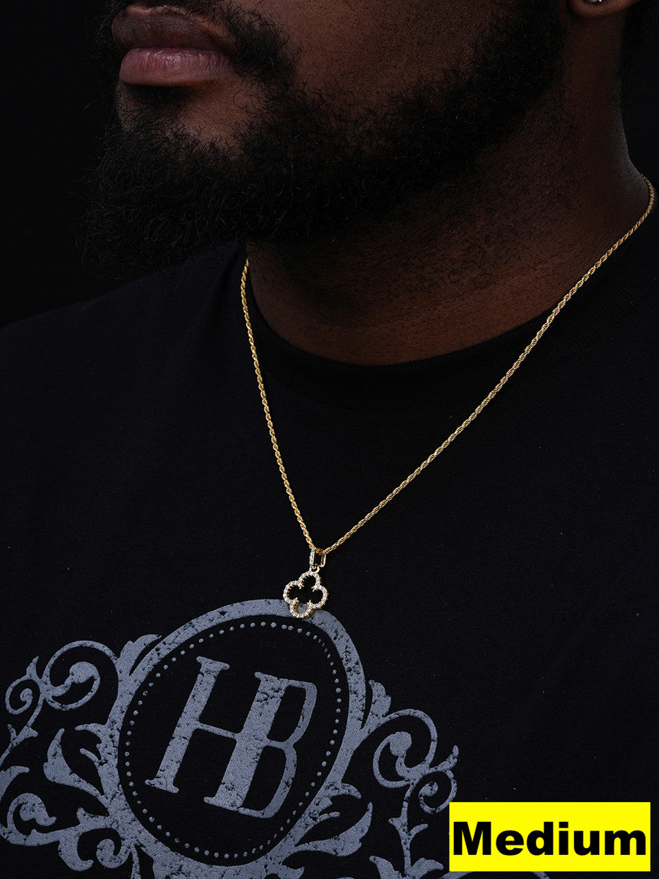 Medium is 0.75" (1" w bale) & weighs 2.4 grams (fits chains up to 3mm thick) 0.65ct moissanite