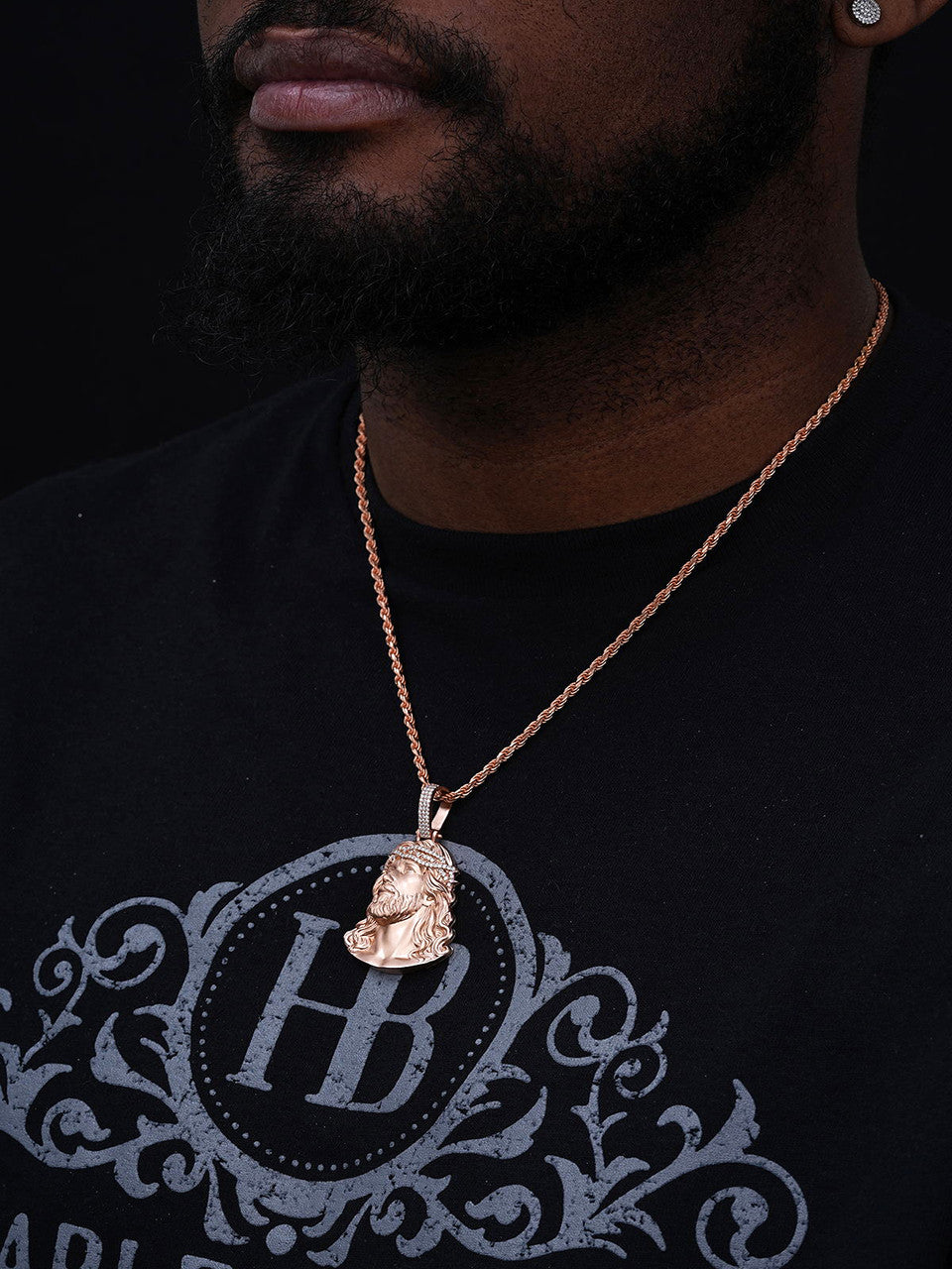 MOISSANITE Passion Of The Christ Jesus Pendant - 14k Rose Vermeil 925 Silver - 3 Sizes 1.5"-3"