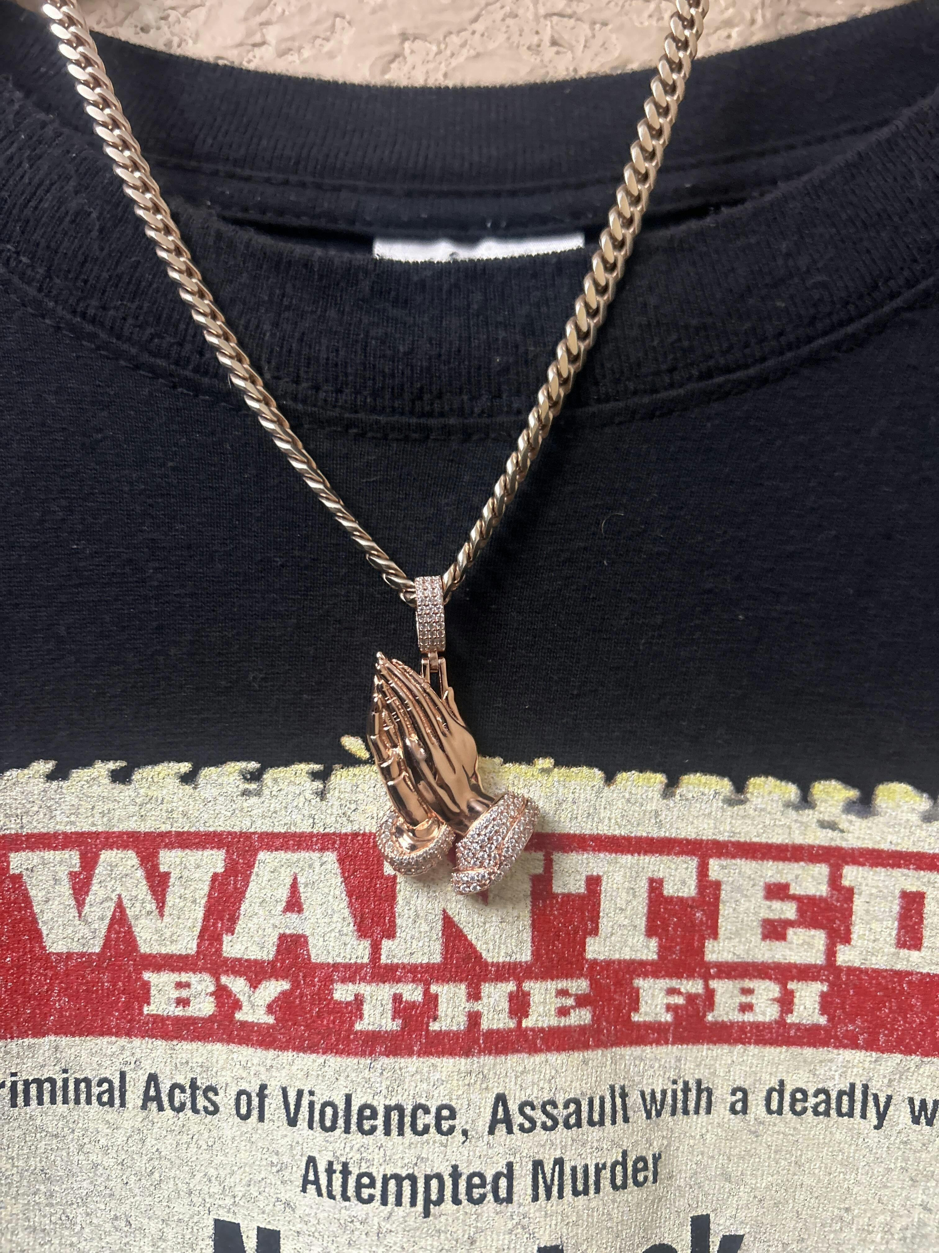 MOISSANITE Praying Folded Hands Religious Pendant - 14k Rose Gold Vermeil 925 Silver - 3 Sizes 1.25"-2.75"