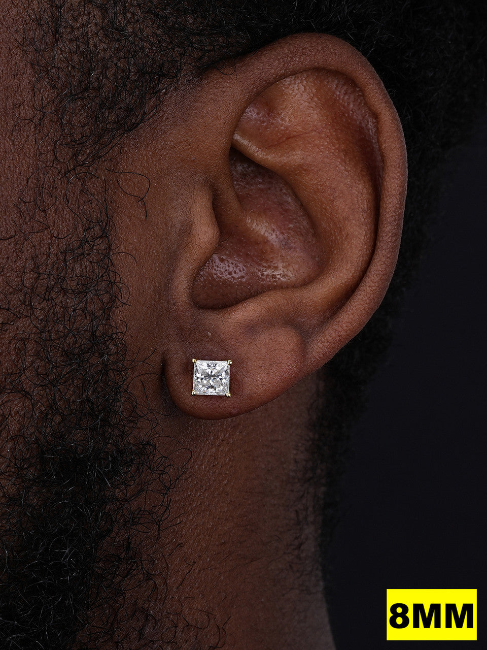 MOISSANITE Princess Cut Square Solitaire Stud Earrings - 14k Gold Vermeil 925 Silver - 3mm-9mm - 0.6-8ct