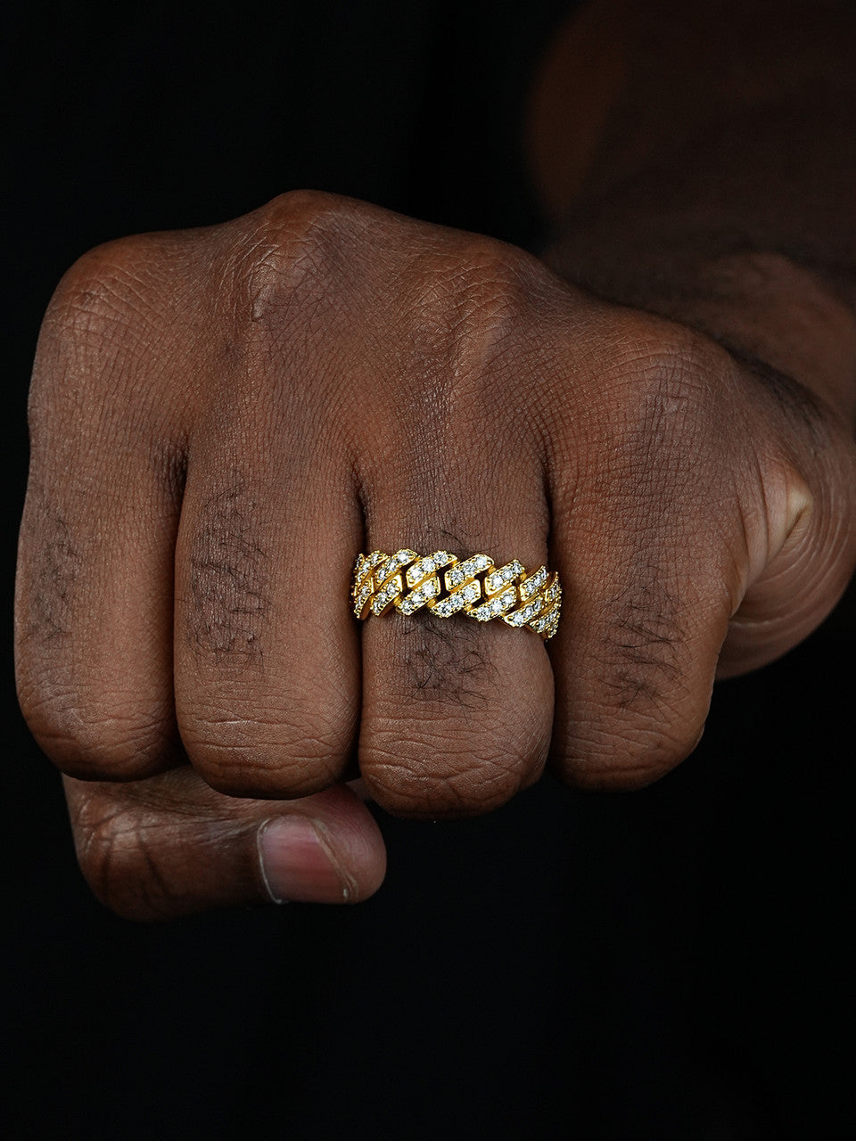 MOISSANITE Prong Cuban Eternity Band Ring - 14k Gold Vermeil 925 Silver