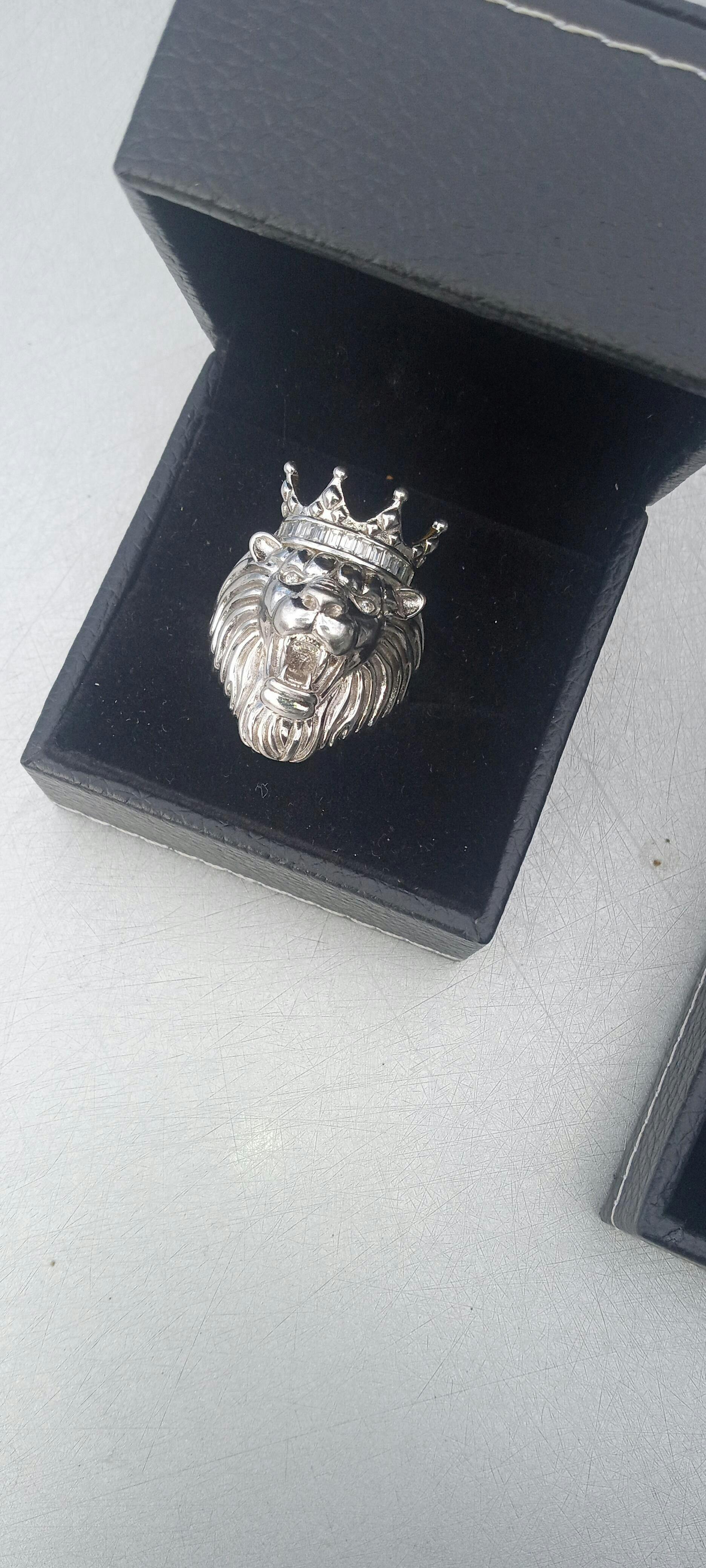 Gorgeous men's moissanite lion with a crown ring