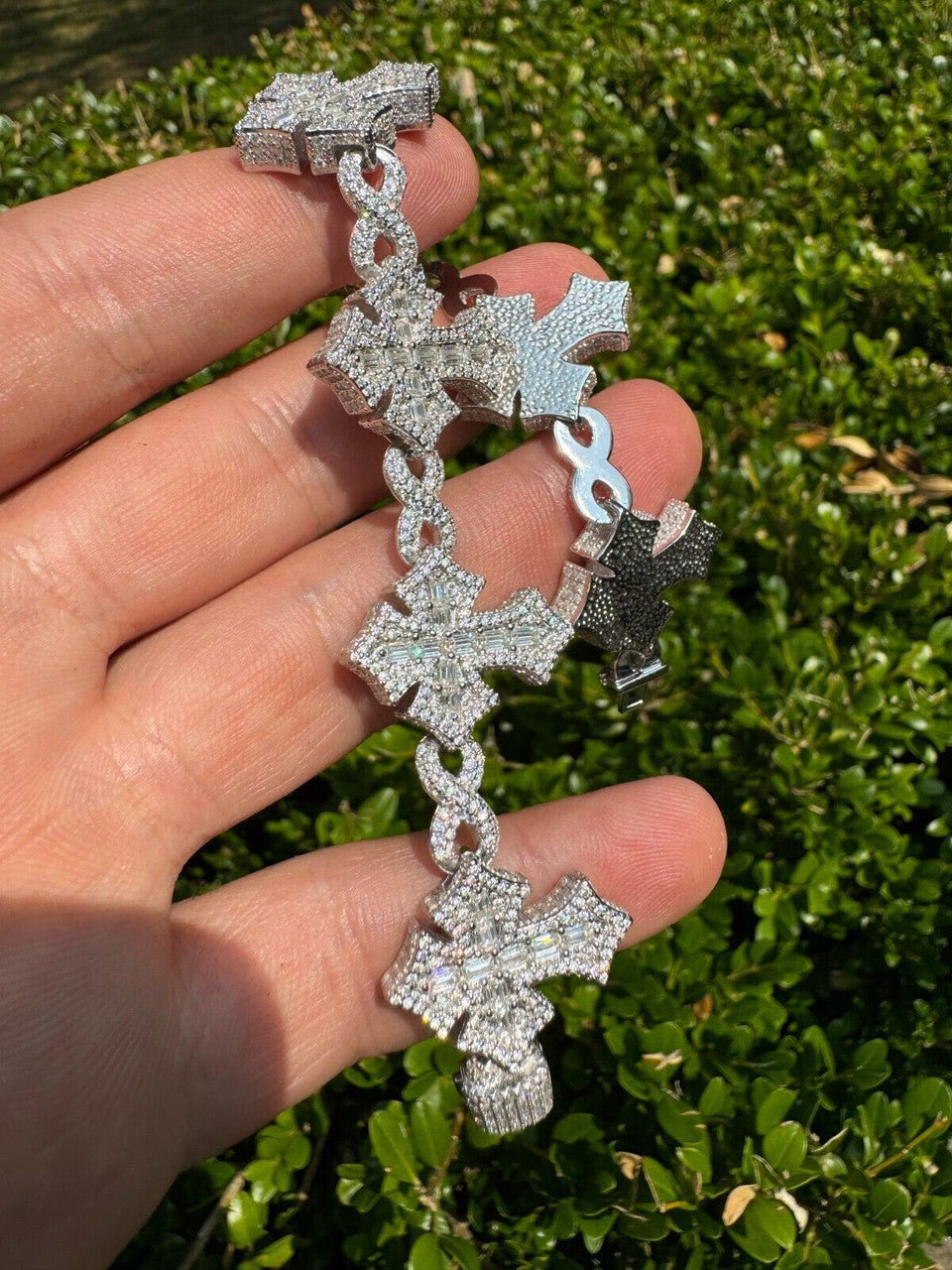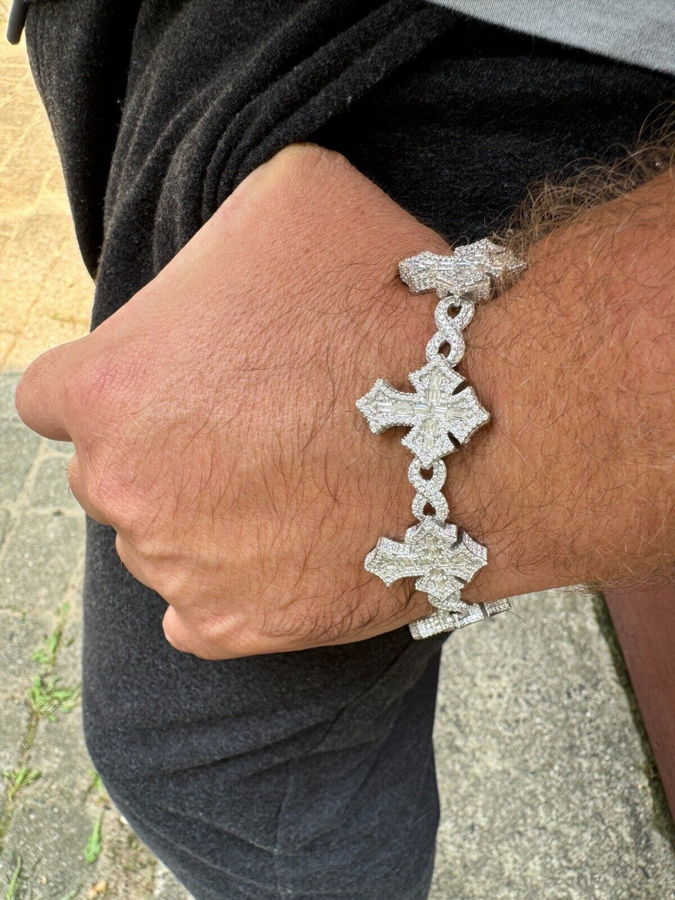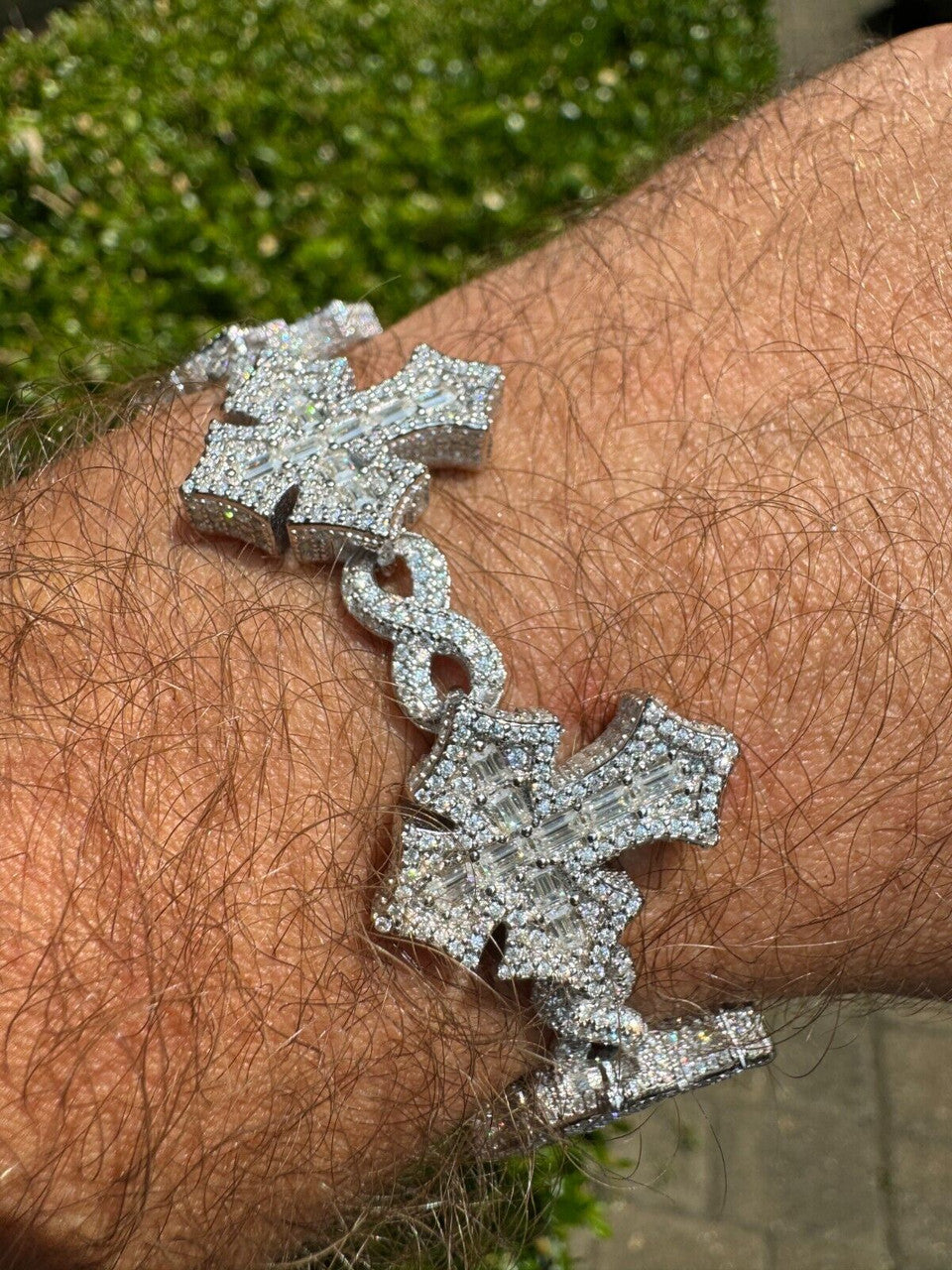 MOISSANITE Eternity 3D Cross Link Bracelet Iced Out - 925 Silver - 24mm - 7.25"-9.25"