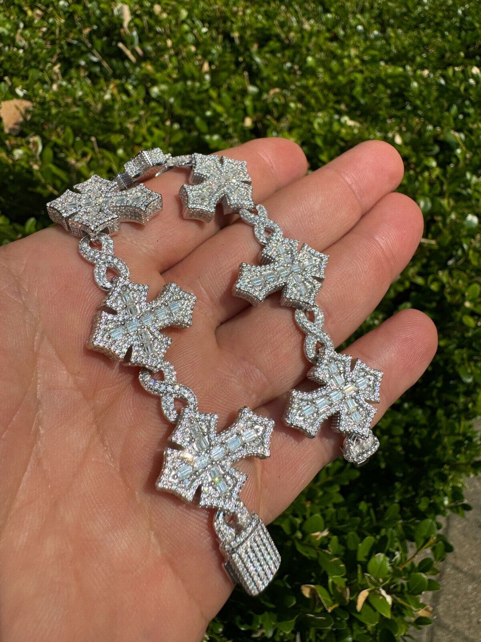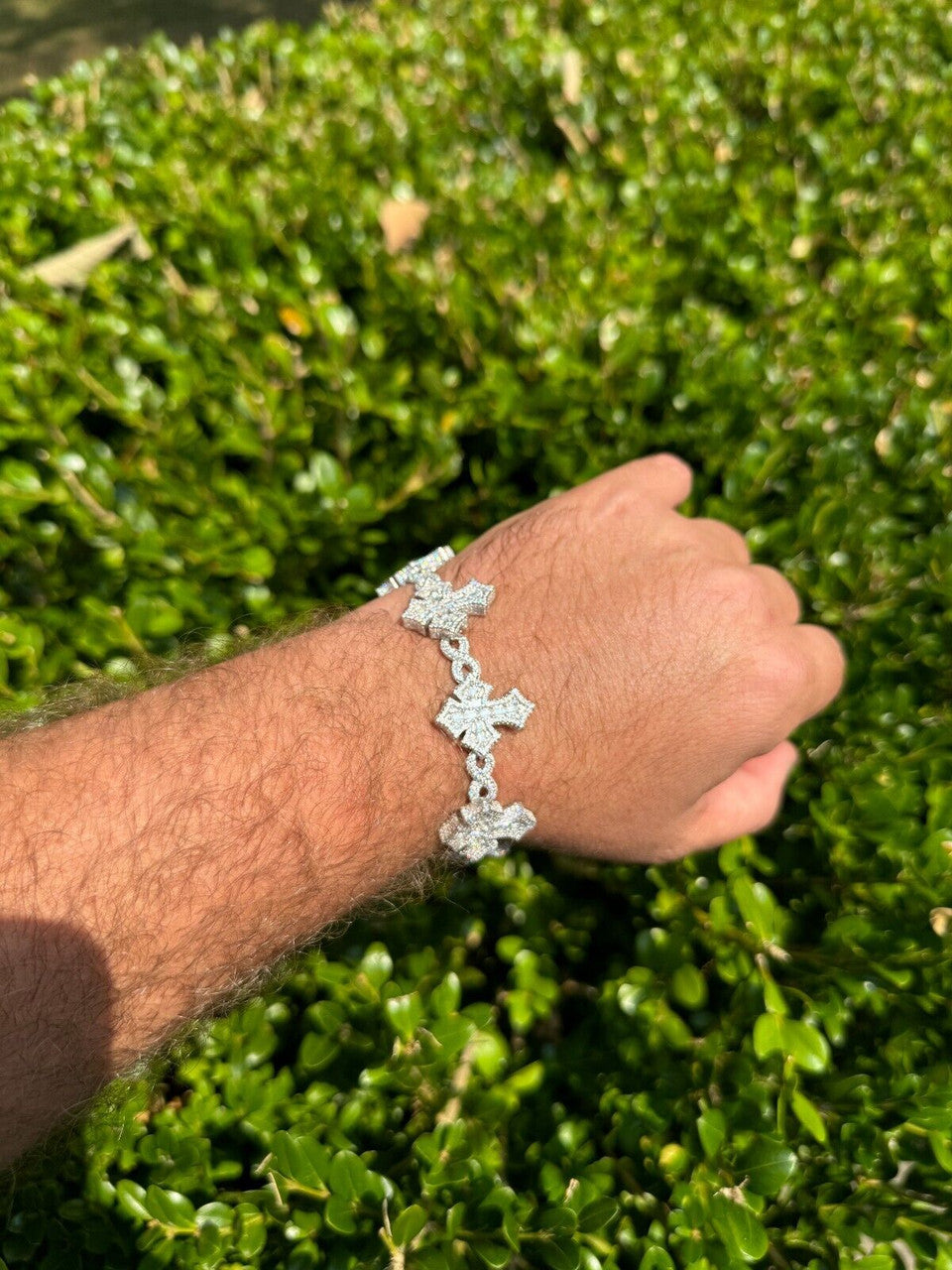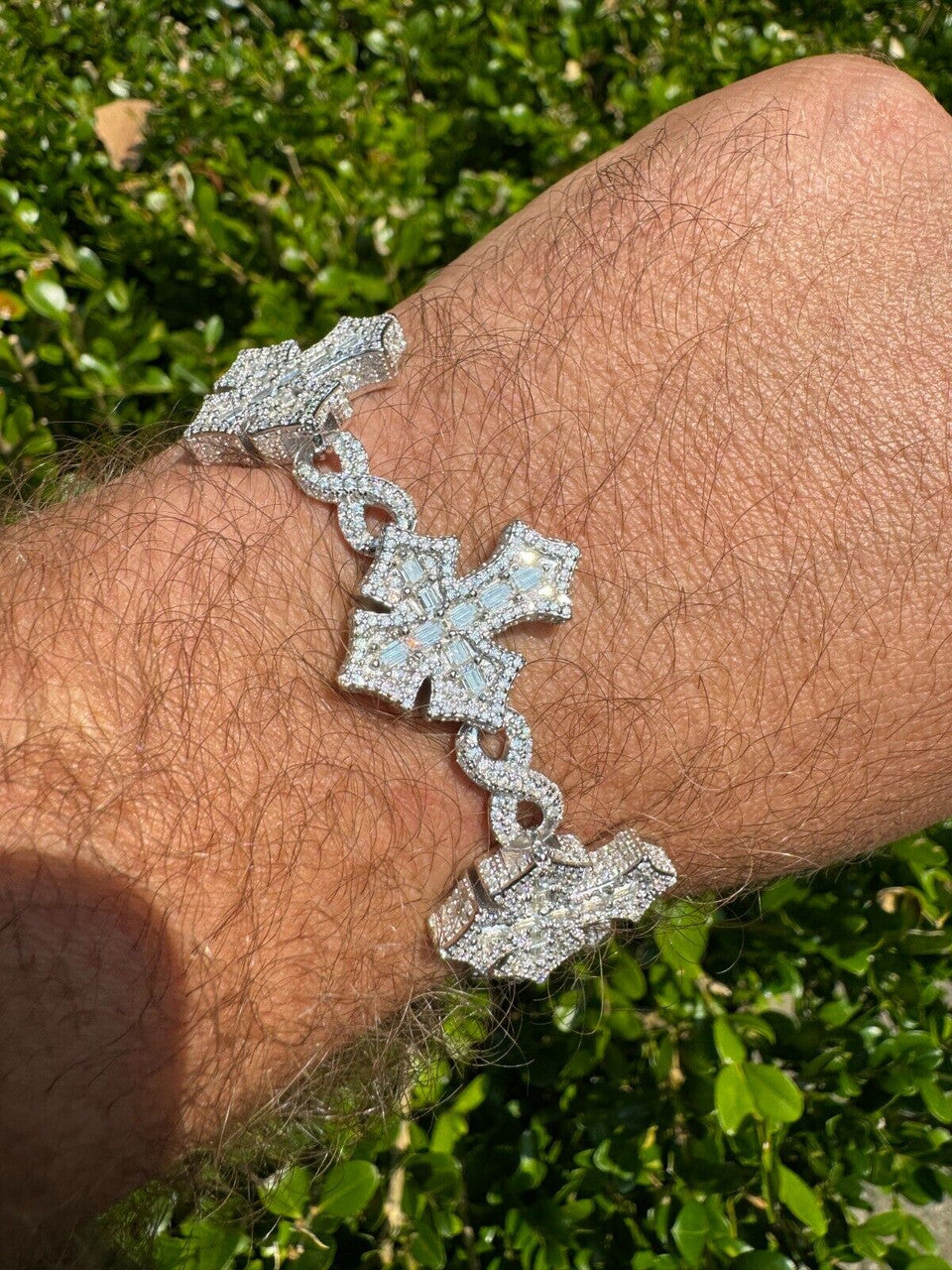 MOISSANITE Eternity 3D Cross Link Bracelet Iced Out - 925 Silver - 24mm - 7.25"-9.25"