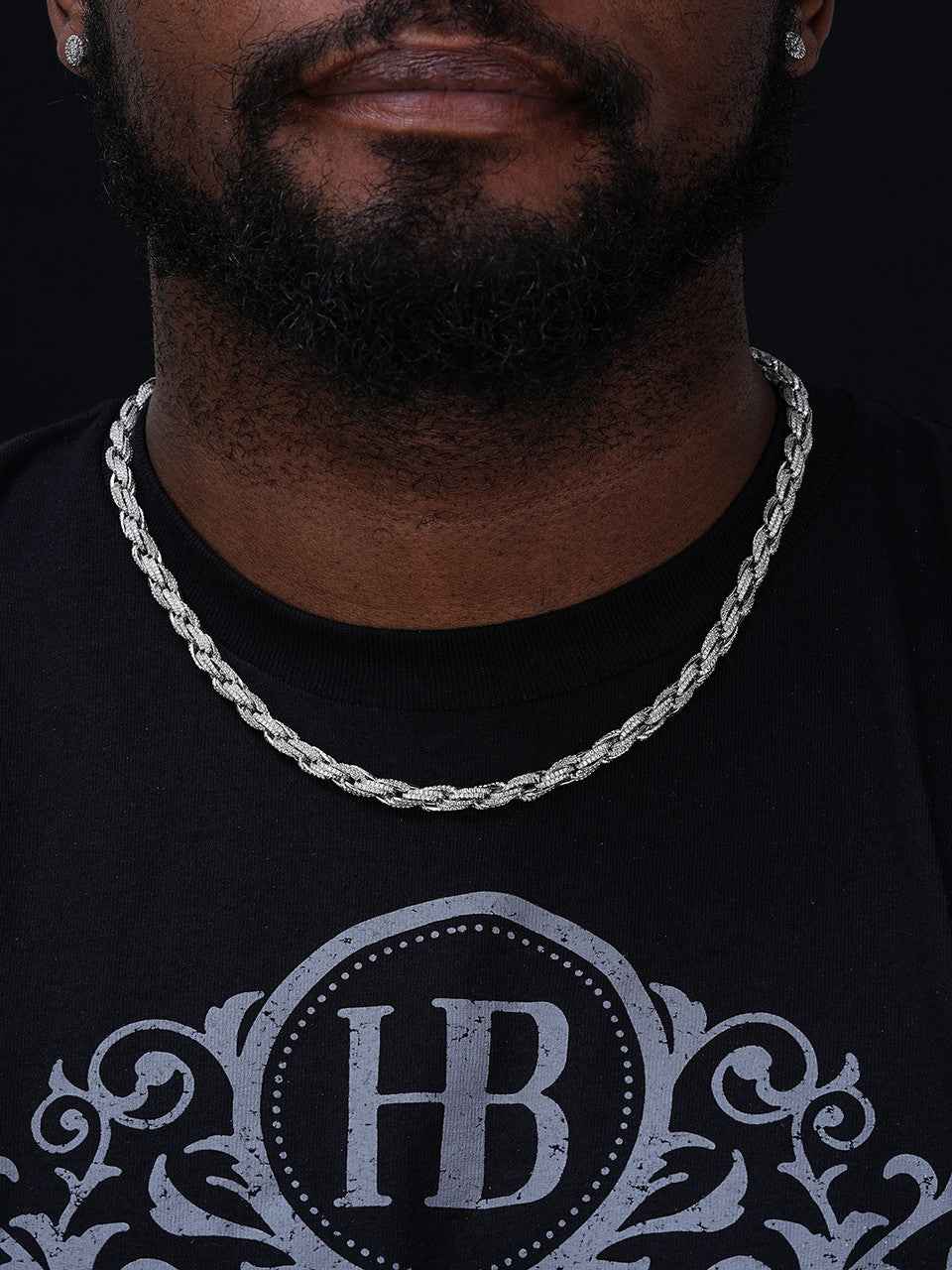 Men's 7.5mm wide iced rope chain set with moissanite stones