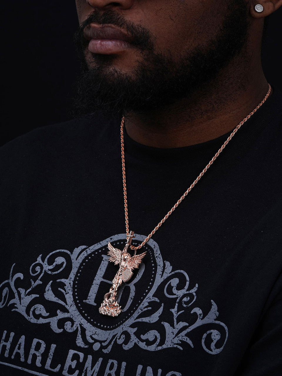 MOISSANITE Saint St Michael Slaying Dragon Archangel Pendant - 14k Rose Vermeil 925 Silver - 3 Sizes 1"-3"