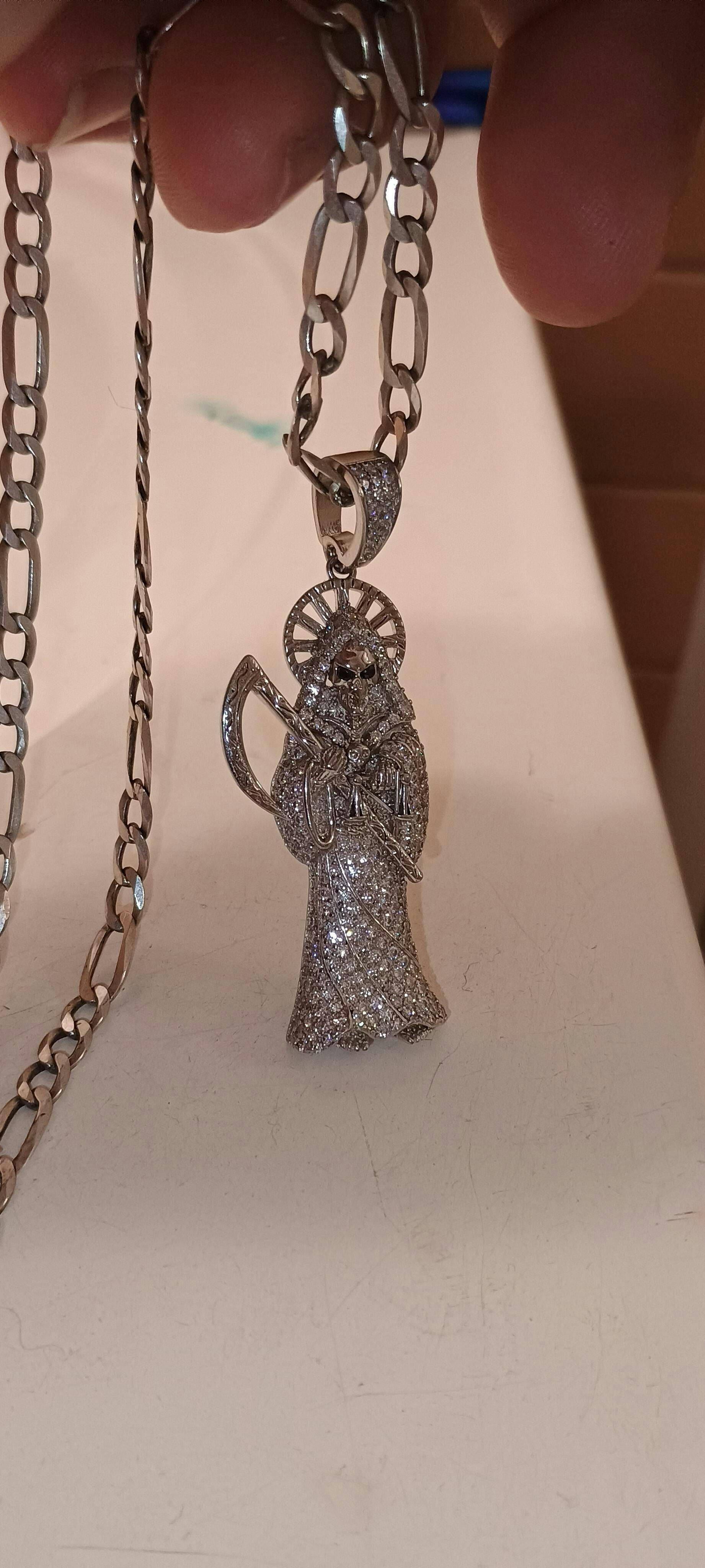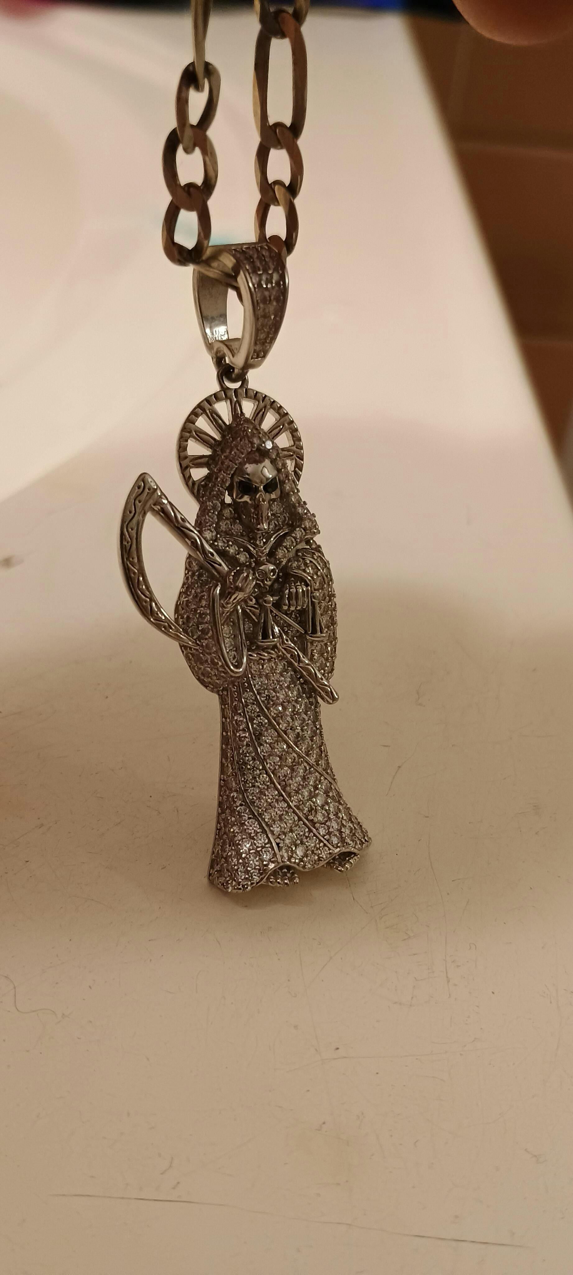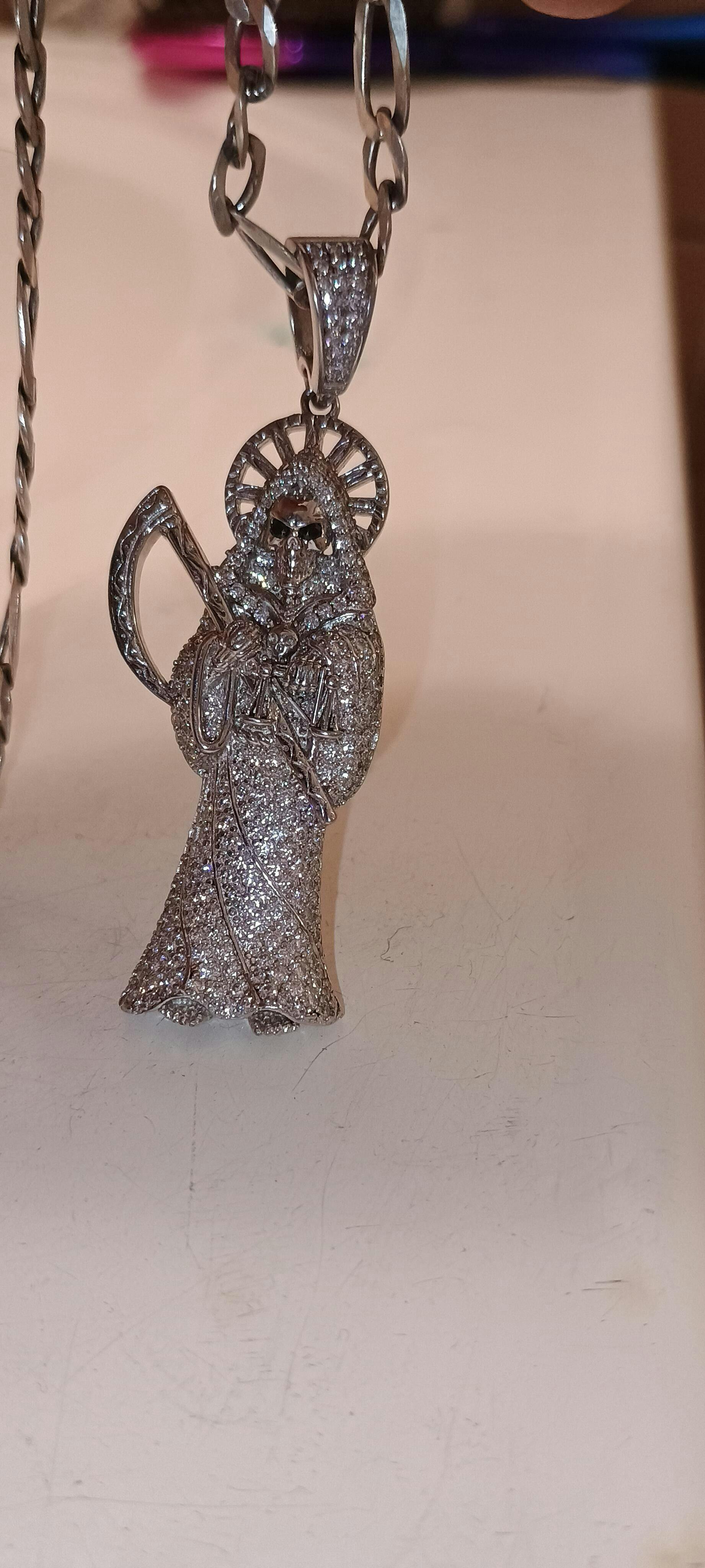MOISSANITE Santa Muerte Grim Reaper Iced Out Pendant - 14k Gold Vermeil Or 925 Silver - Large 2.5"