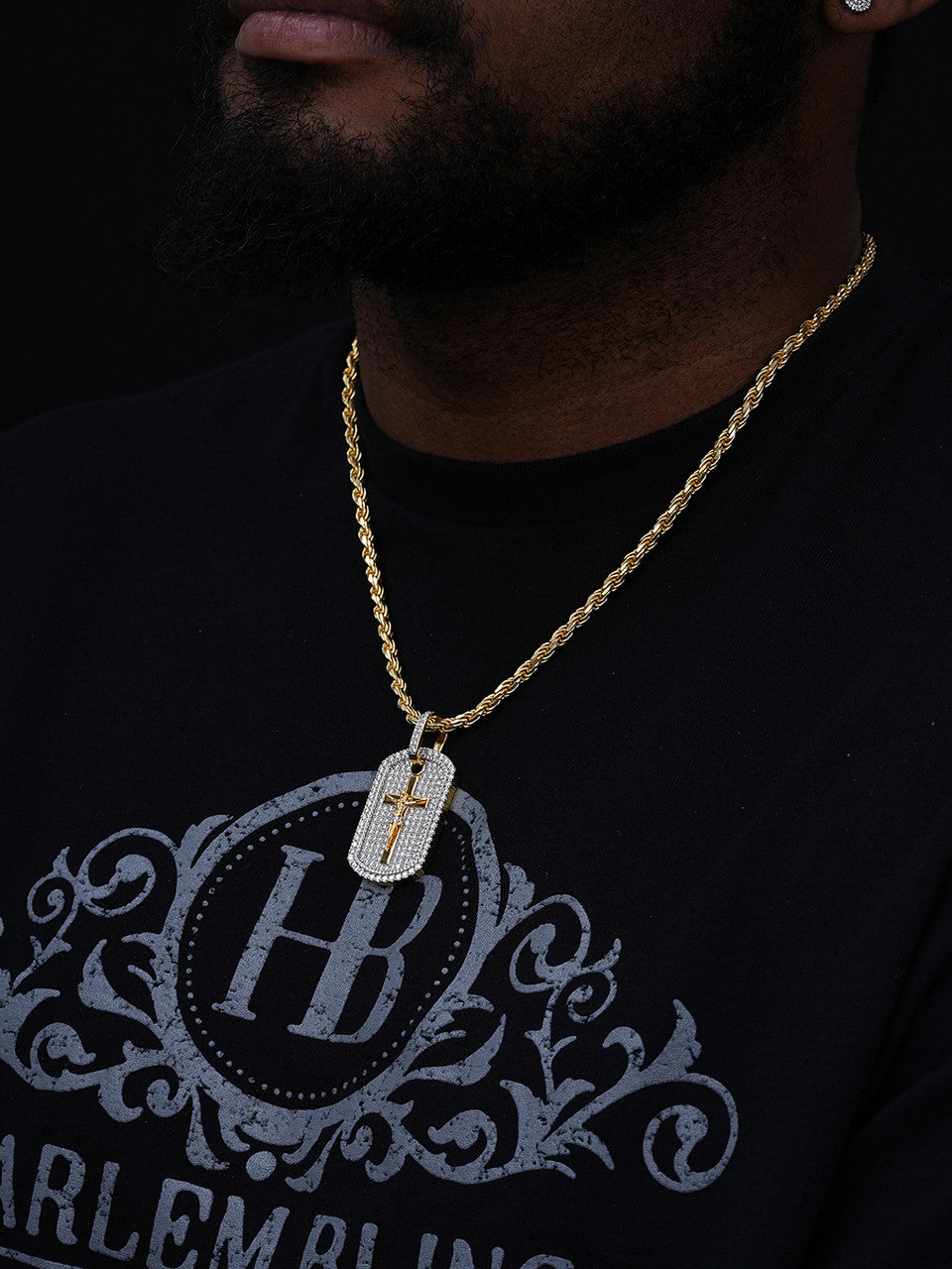 Gorgeous Jesus crucifix dog tag pendant fully iced with moissanite stones