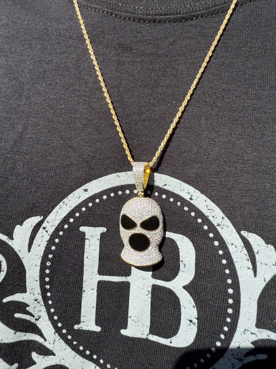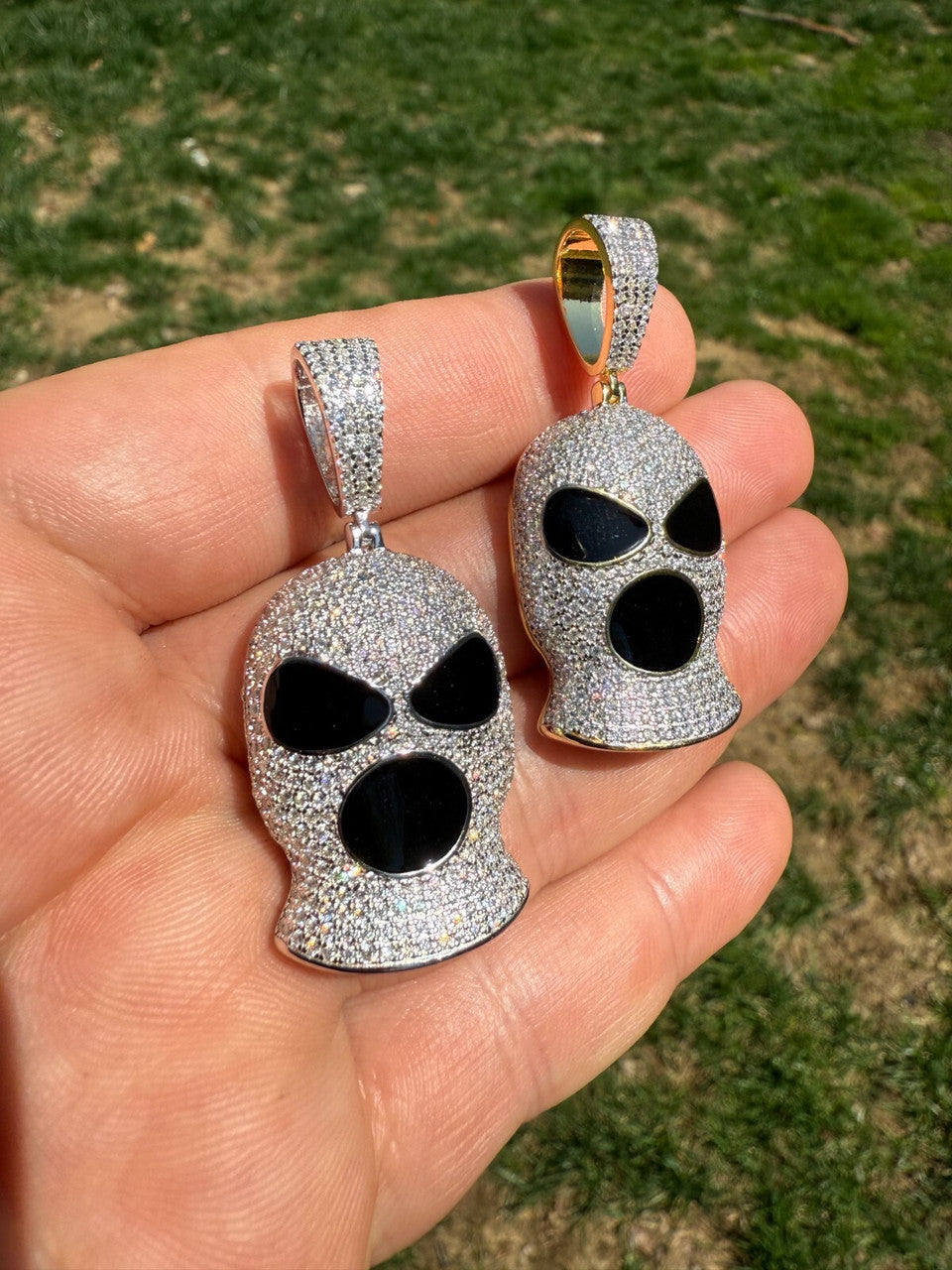 MOISSANITE Ski Mask Goon Iced Out Pendant - 14k Yellow Gold Vermeil Or 925 Silver - Medium 1.75"