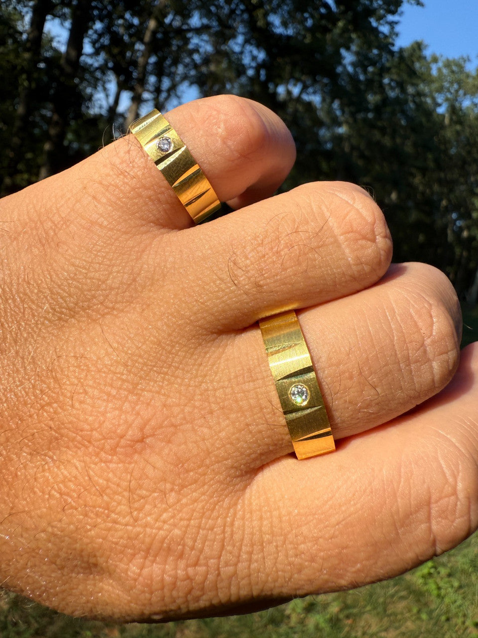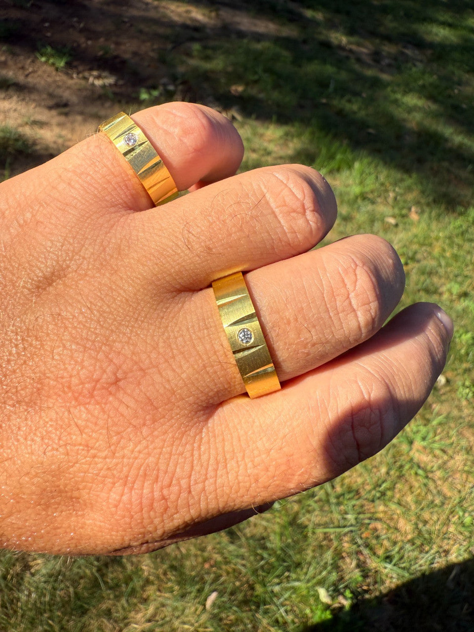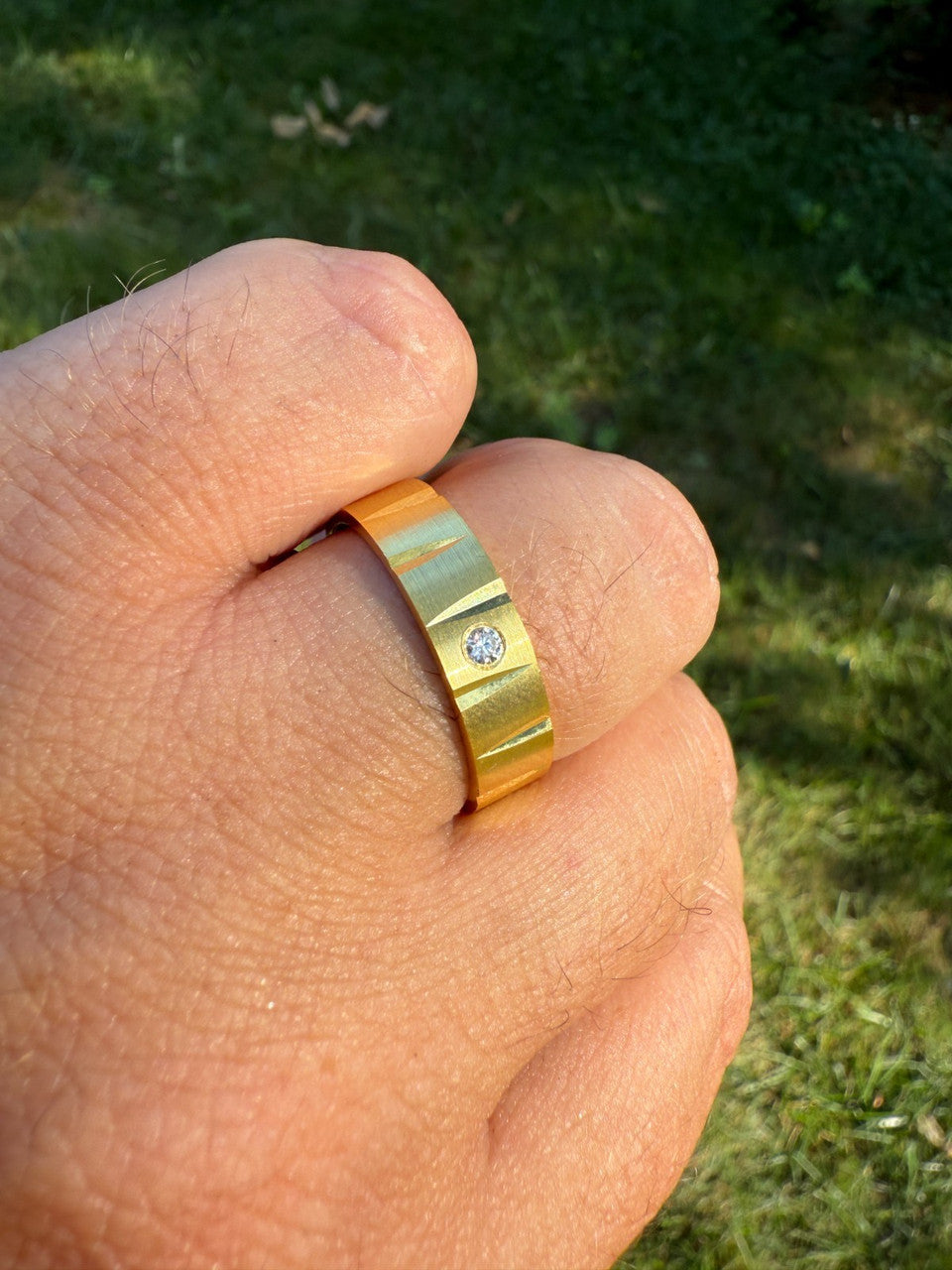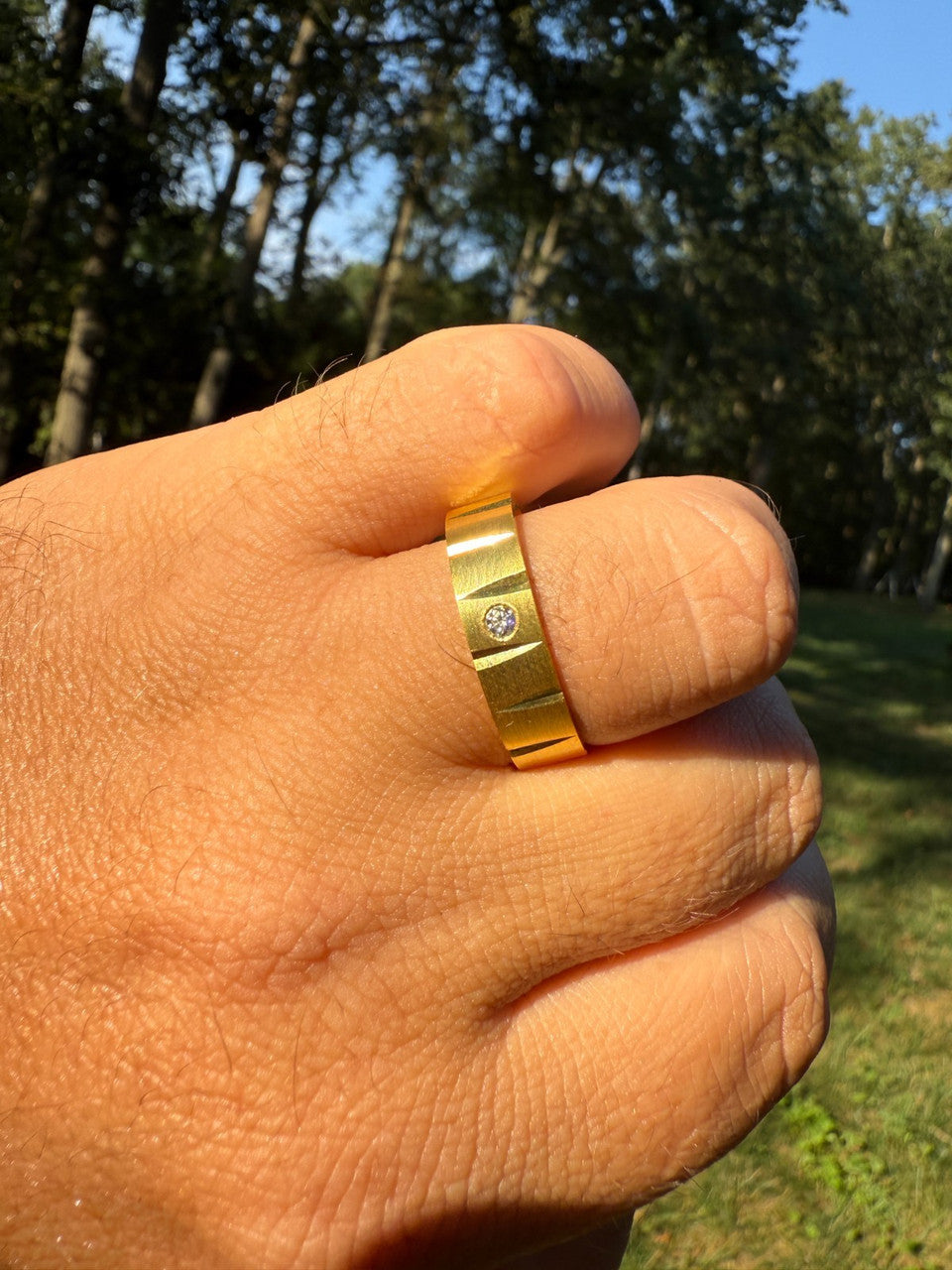 Amazing etched diamond cut design all around the band for a unique & modern look
