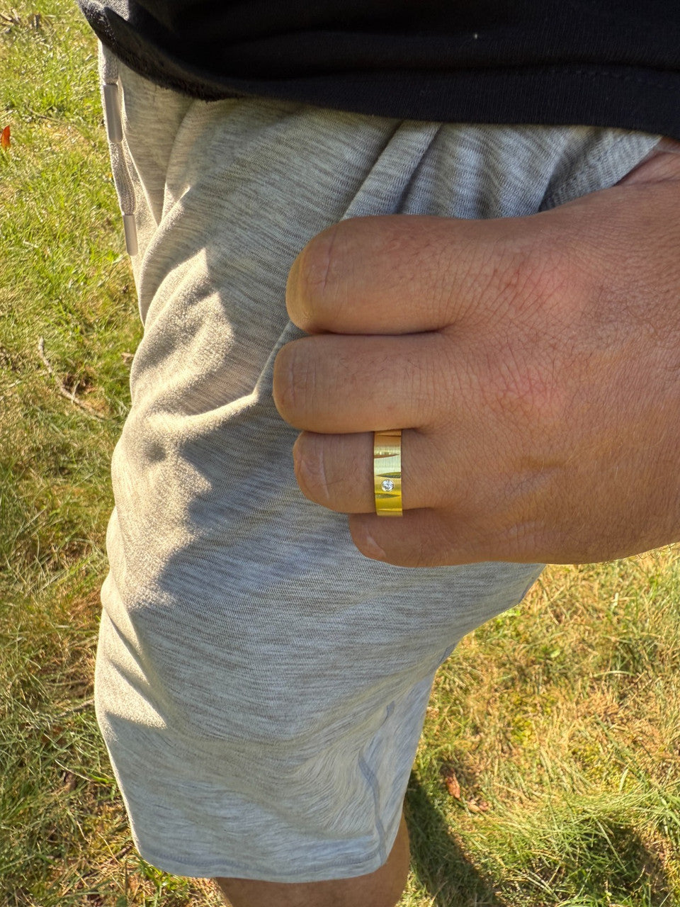 2.5mm center moissanite stone (not large but enough to give it subtle bling)