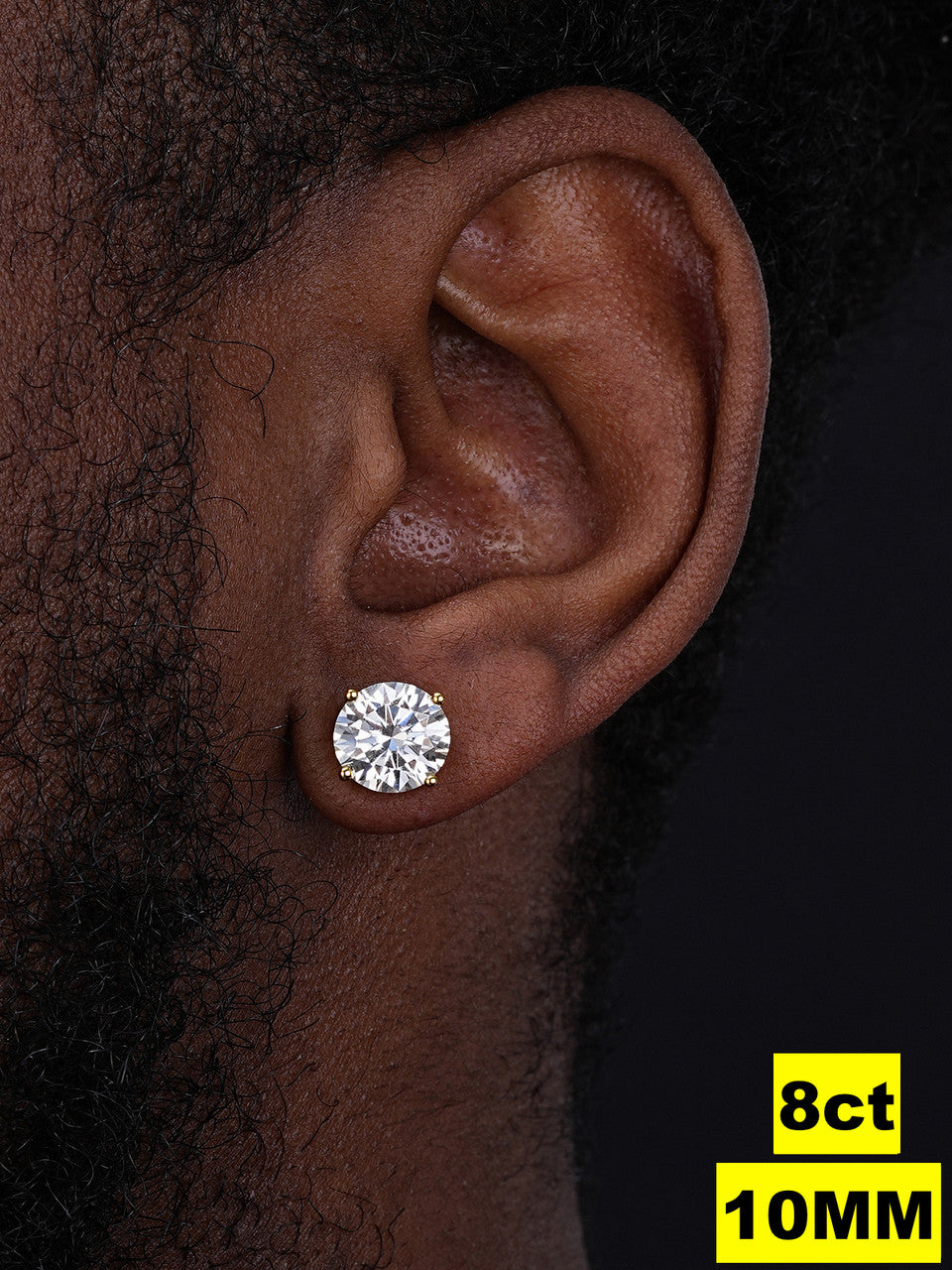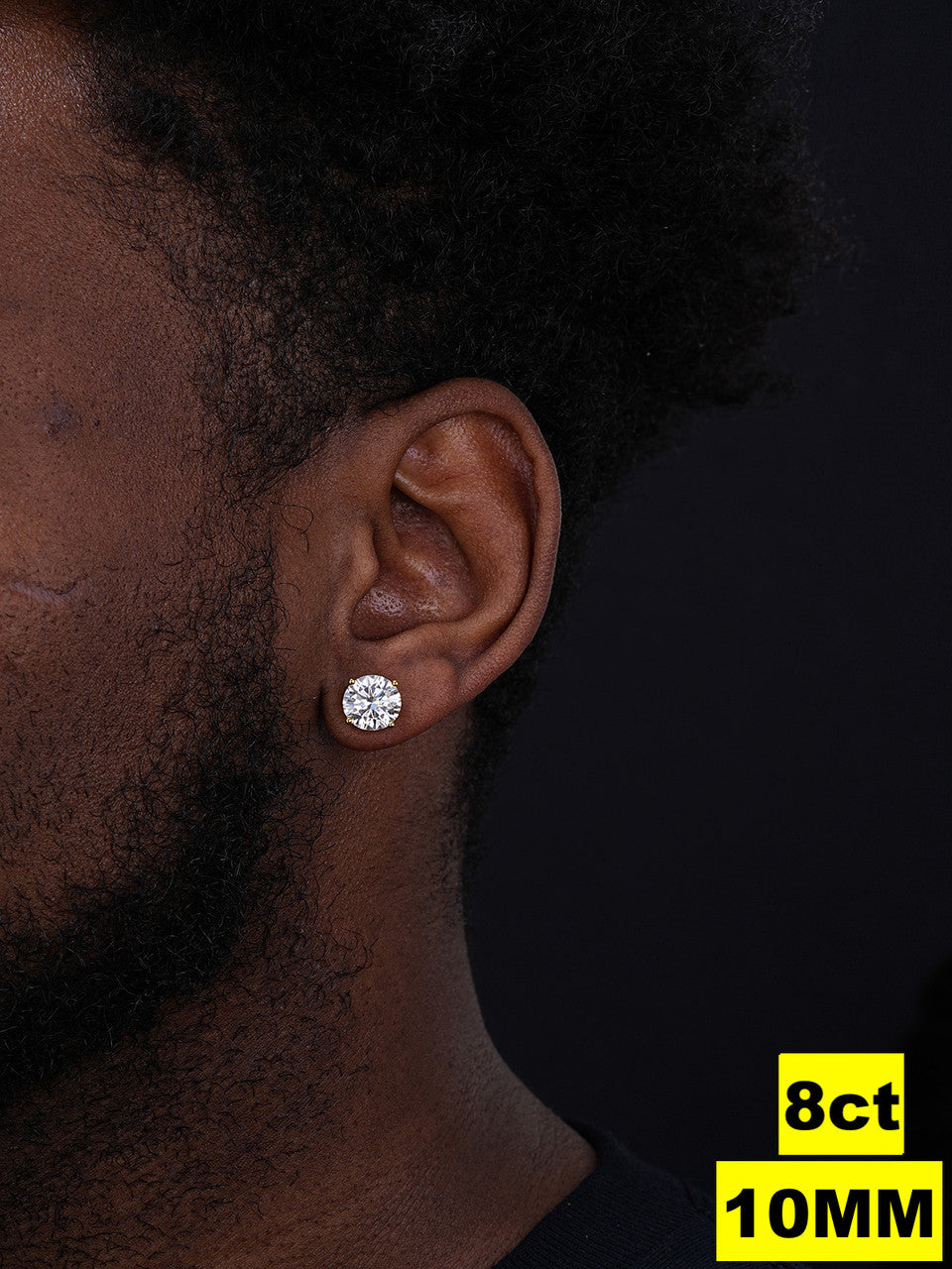 10mm each stone (4ct EACH stone) - noticeable for a $$$ look for men or women for those that love attention (4.2 grams)