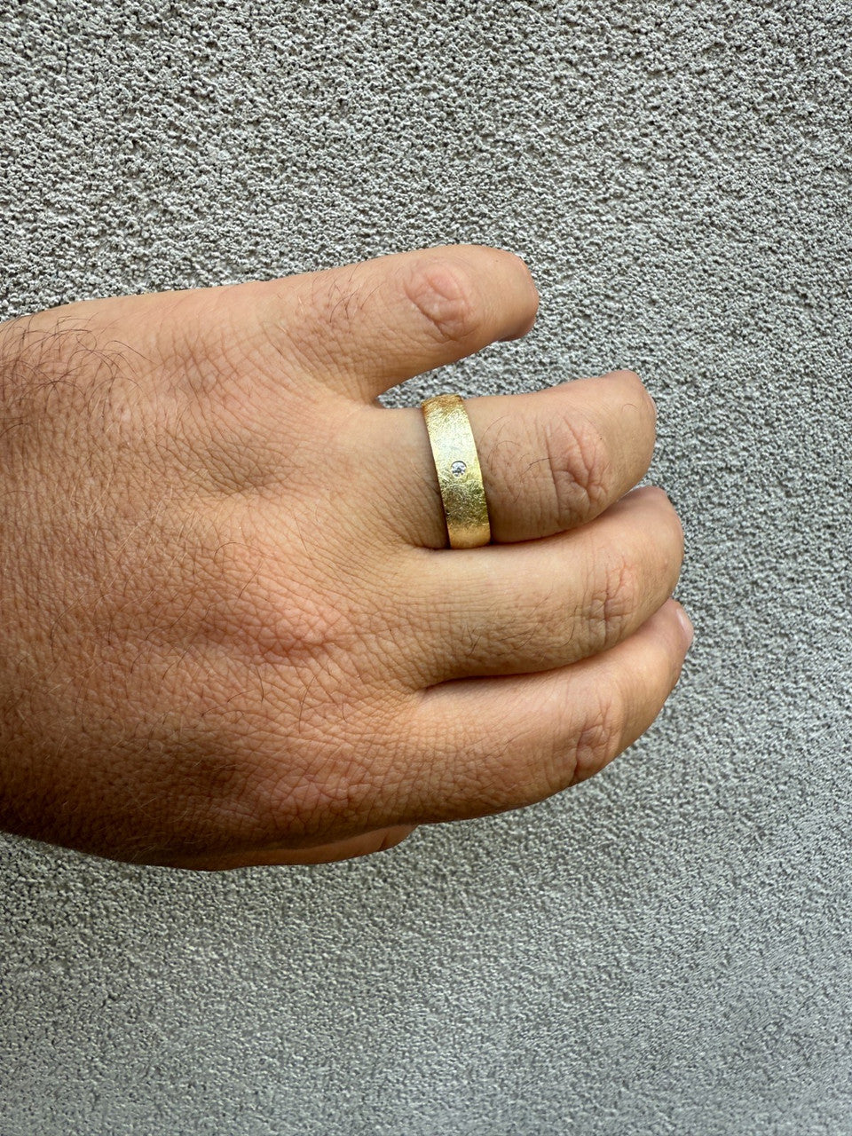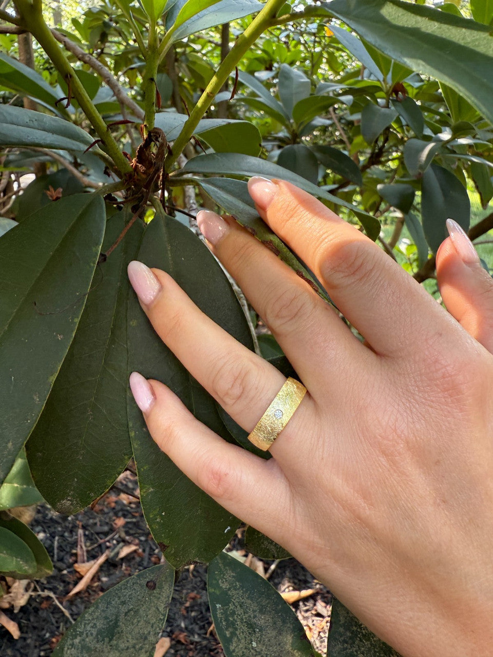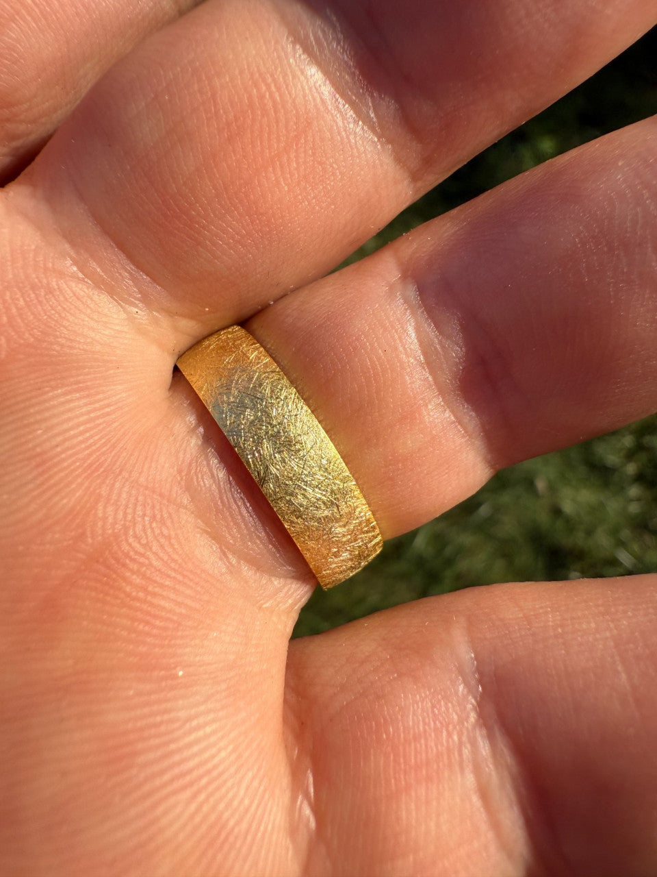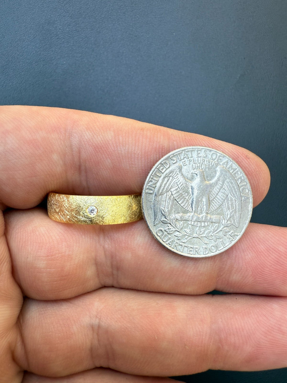 MOISSANITE Solitaire Scraped Brushed Wedding Band Ring - 14k Gold Vermeil 925 Silver