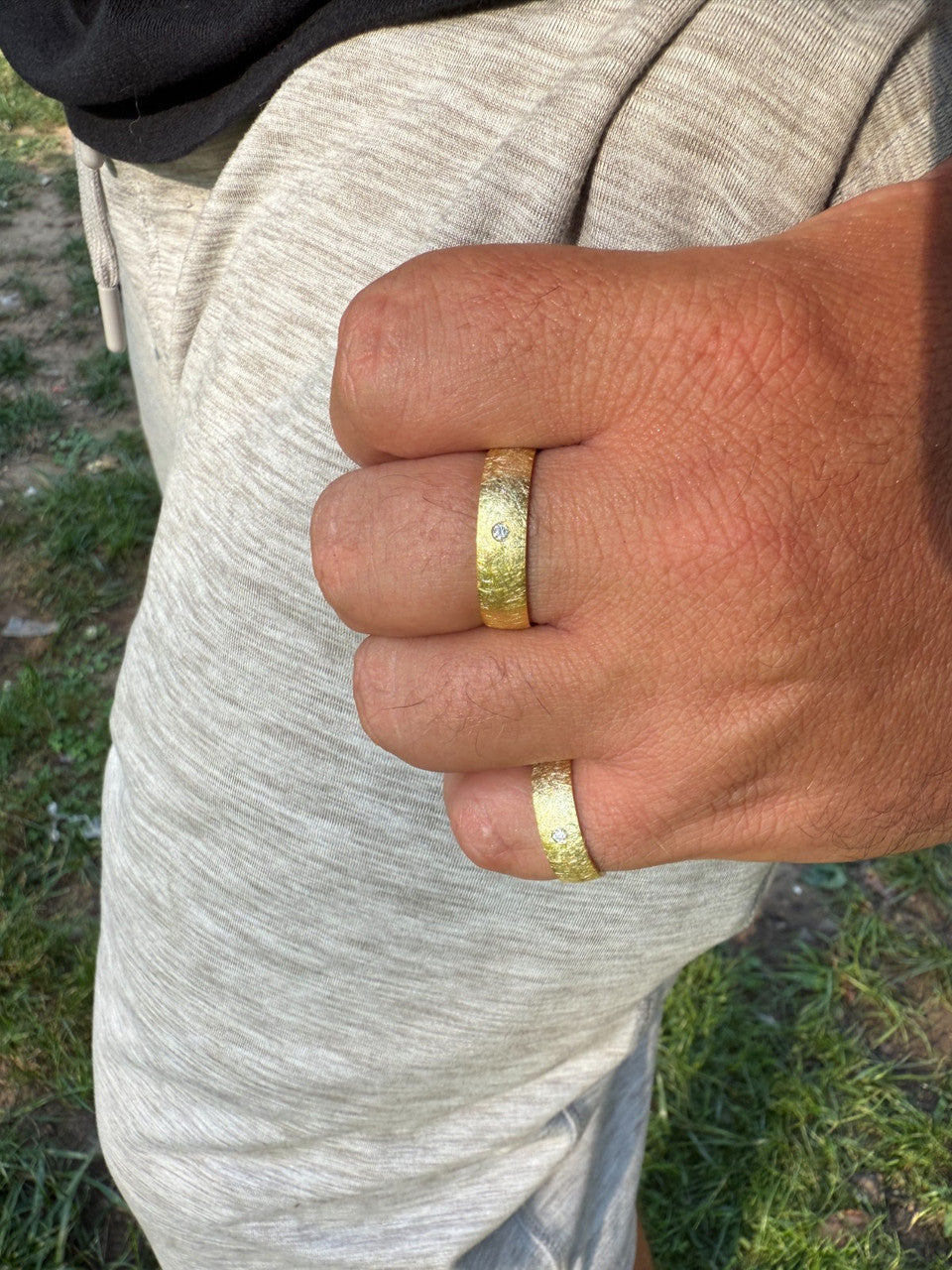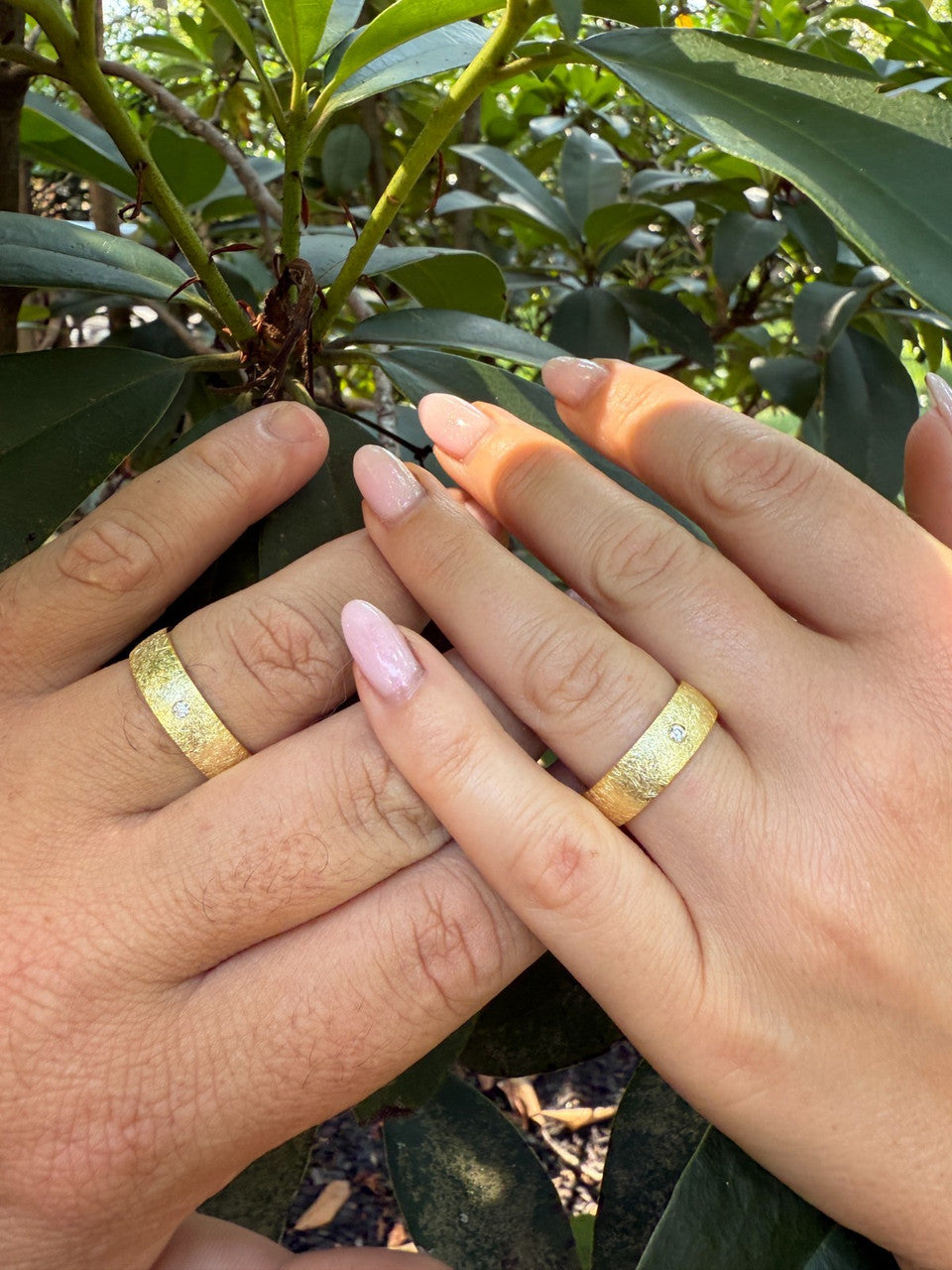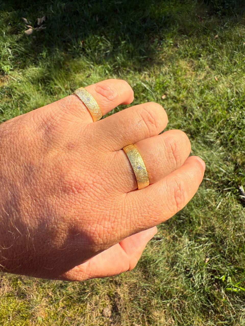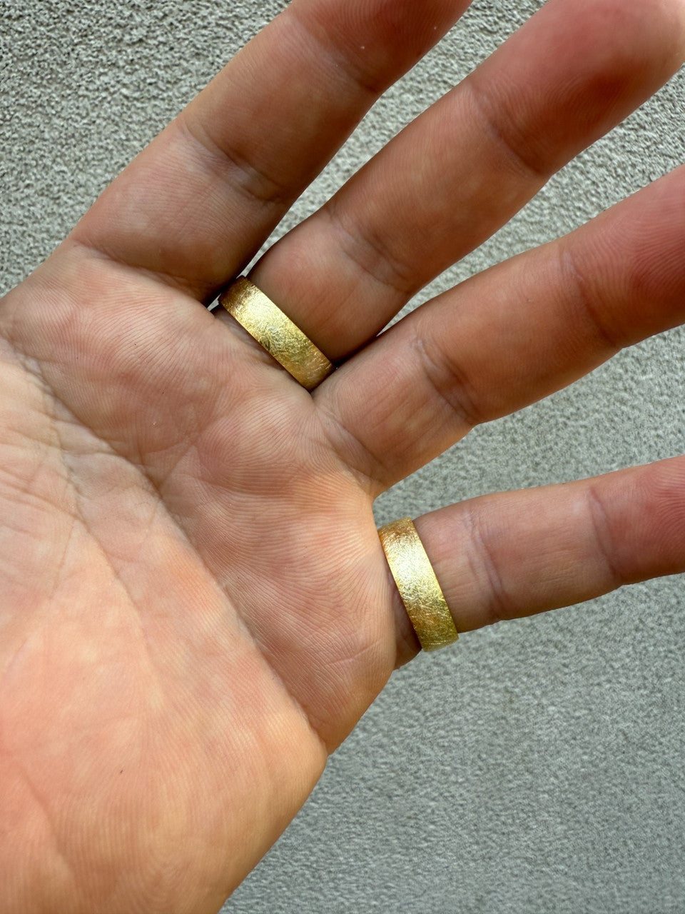 MOISSANITE Solitaire Scraped Brushed Wedding Band Ring - 14k Gold Vermeil 925 Silver
