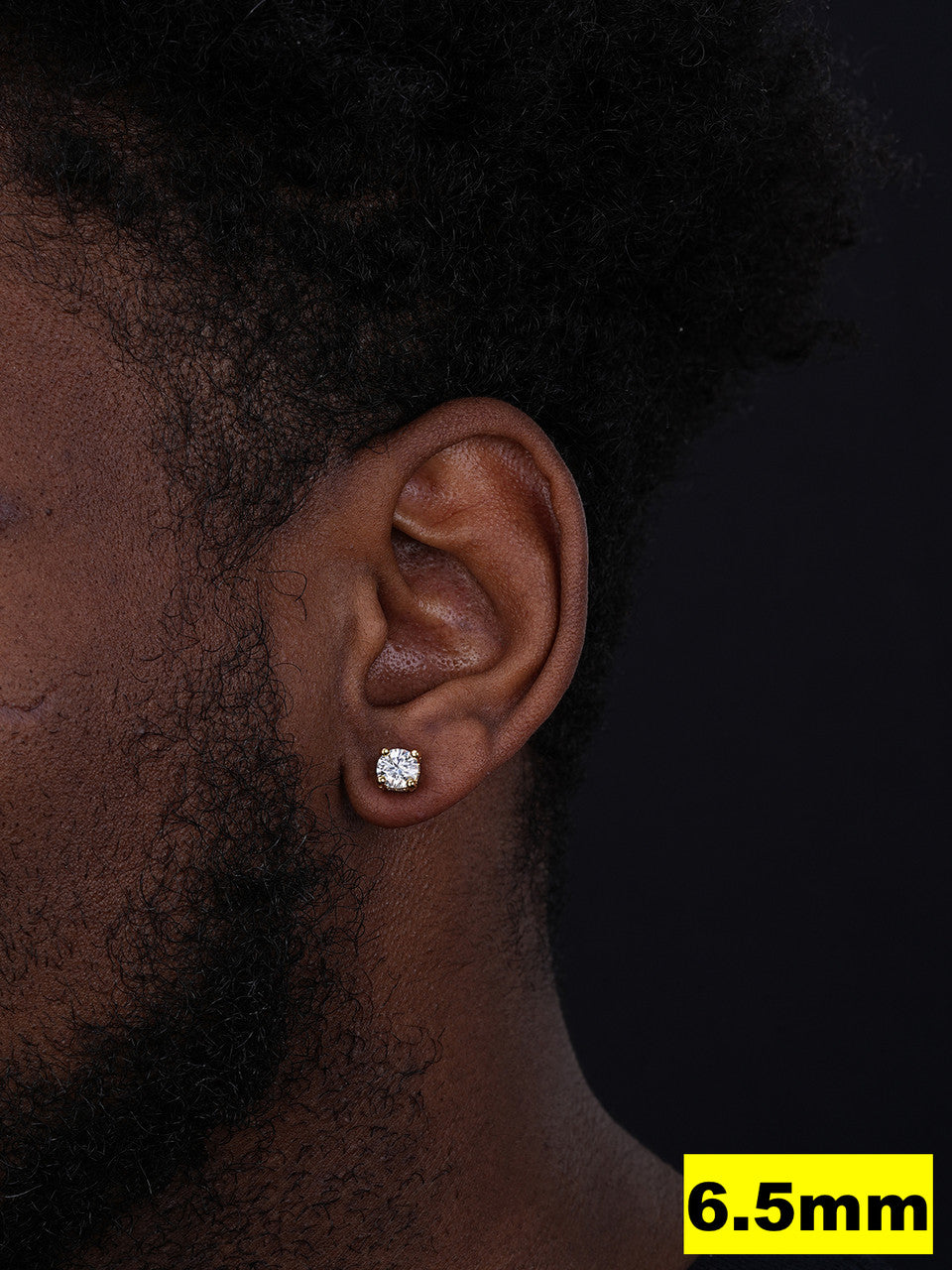 6.5mm each stone (1ct EACH center stone & 0.48ct side stones for total of 2.96ct) - Noticeable for a $$$ look for men or women (2.6 grams)