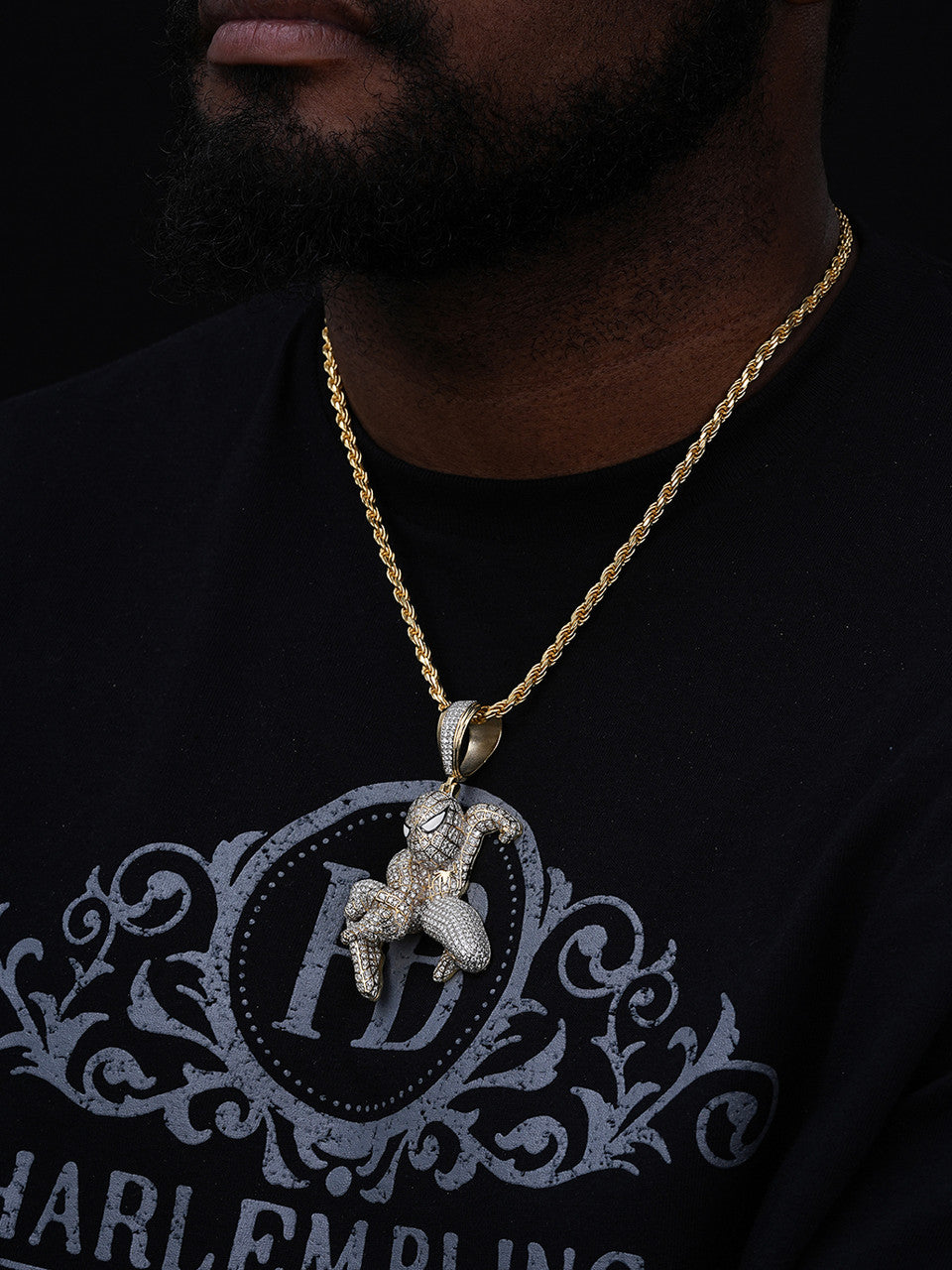 MOISSANITE Spiderman Iced Out Pendant - 14k Gold Vermeil Or 925 Silver - Large 2.5"