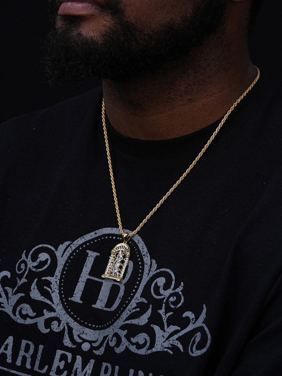 MOISSANITE St Lazarus Pendant - 14k Yellow Gold Vermeil Or 925 Silver - Small 1.75"