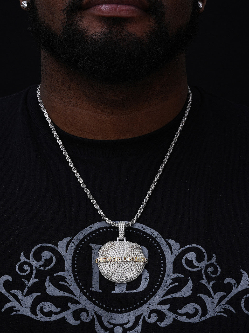 MOISSANITE World Is Mine Globe Pendant - 14k Gold Vermeil Or 925 Silver - Large 2.5"