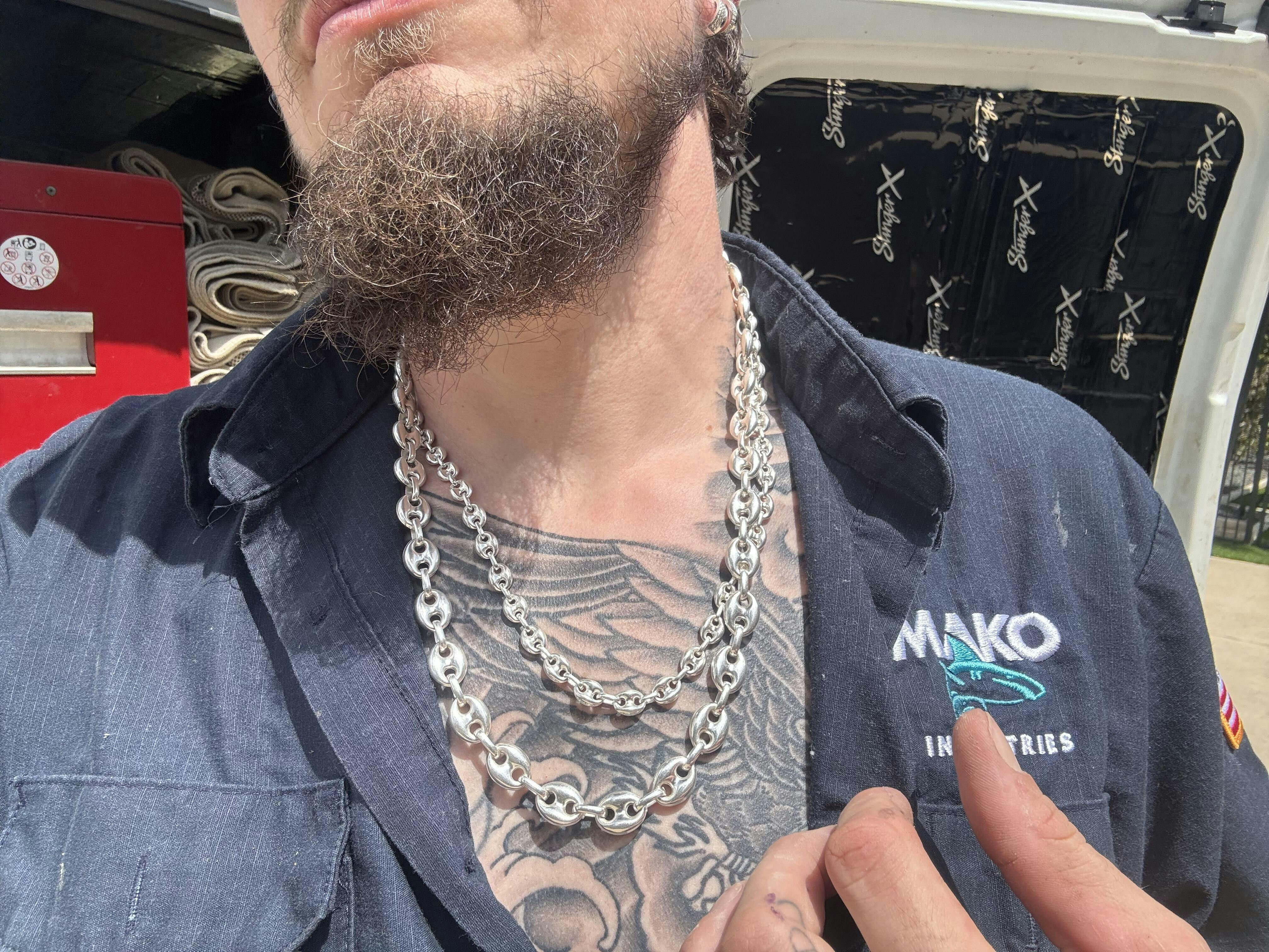 These chains are hollow and puffed...thats what gives them the 3D effect...puffed gucci chains feel light and confortable to wear because its like a ball of silver and is empty inside!
