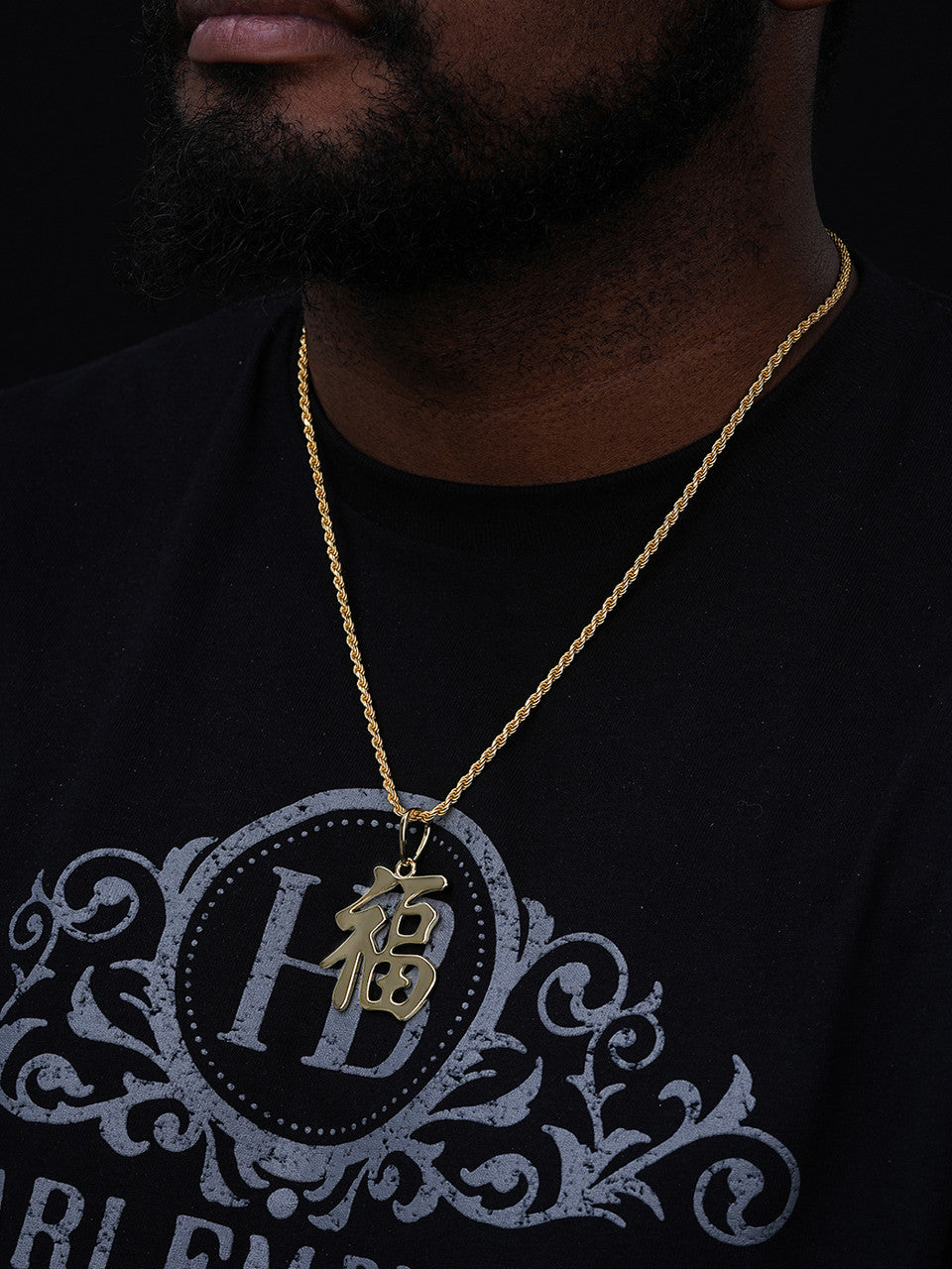 Real 925 Silver / 14k Gold Plated Chinese FU Symbol Good Luck Fortune 2" Pendant