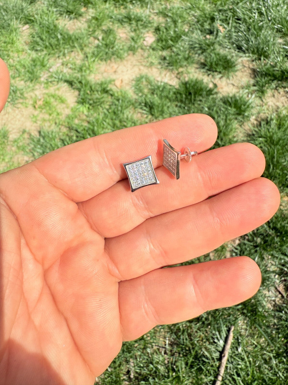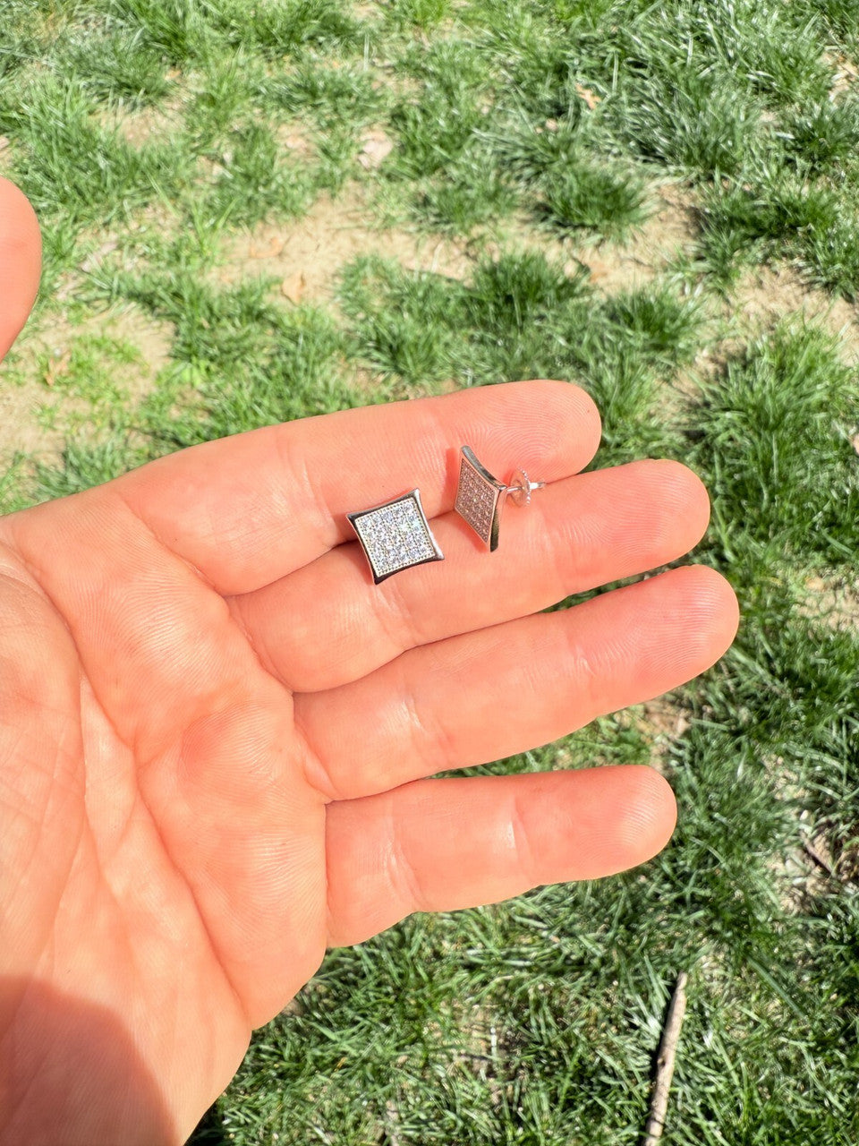 Real 925 Sterling Silver Kite Earrings Iced CZ Screwbacks 11mm - WHOLESALE DEAL