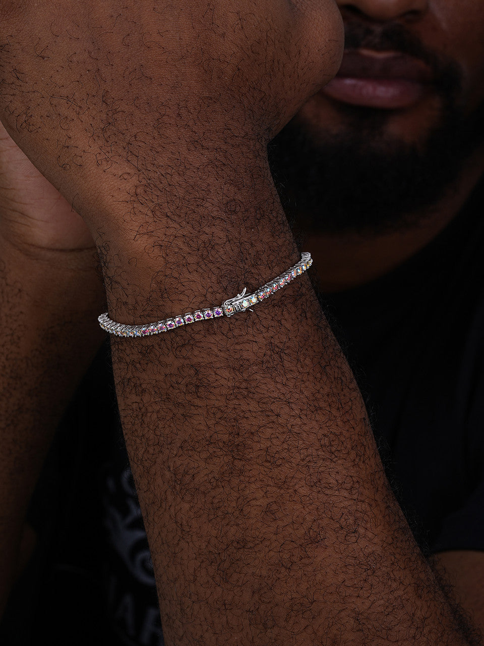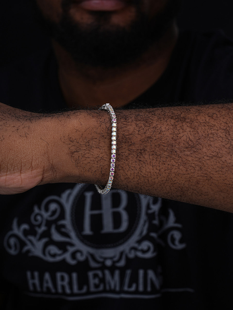Real Iced Opal Rainbow MOISSANITE 3mm Tennis Bracelet 925 Silver Diamond Tester