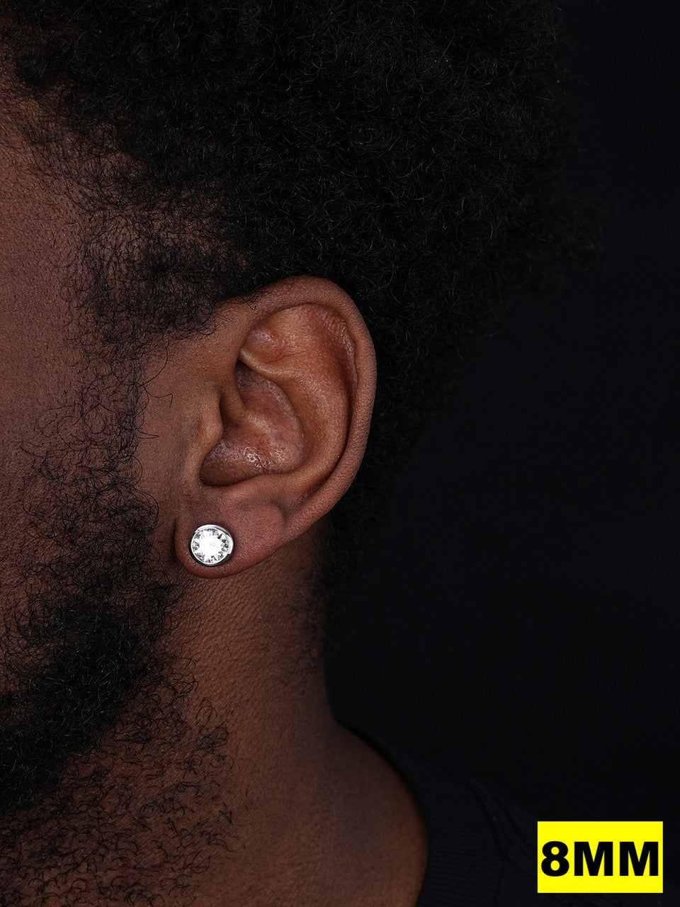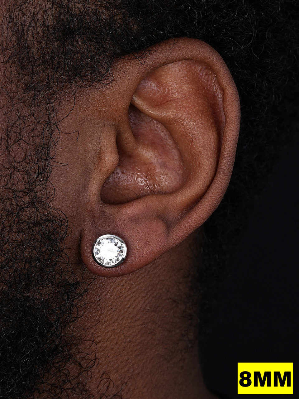 10mm each stoneĀ (4ct EACH stone)Ā - noticeableĀ for a HUGE $$$ look for men or women for those that love attention (7.9 grams)
