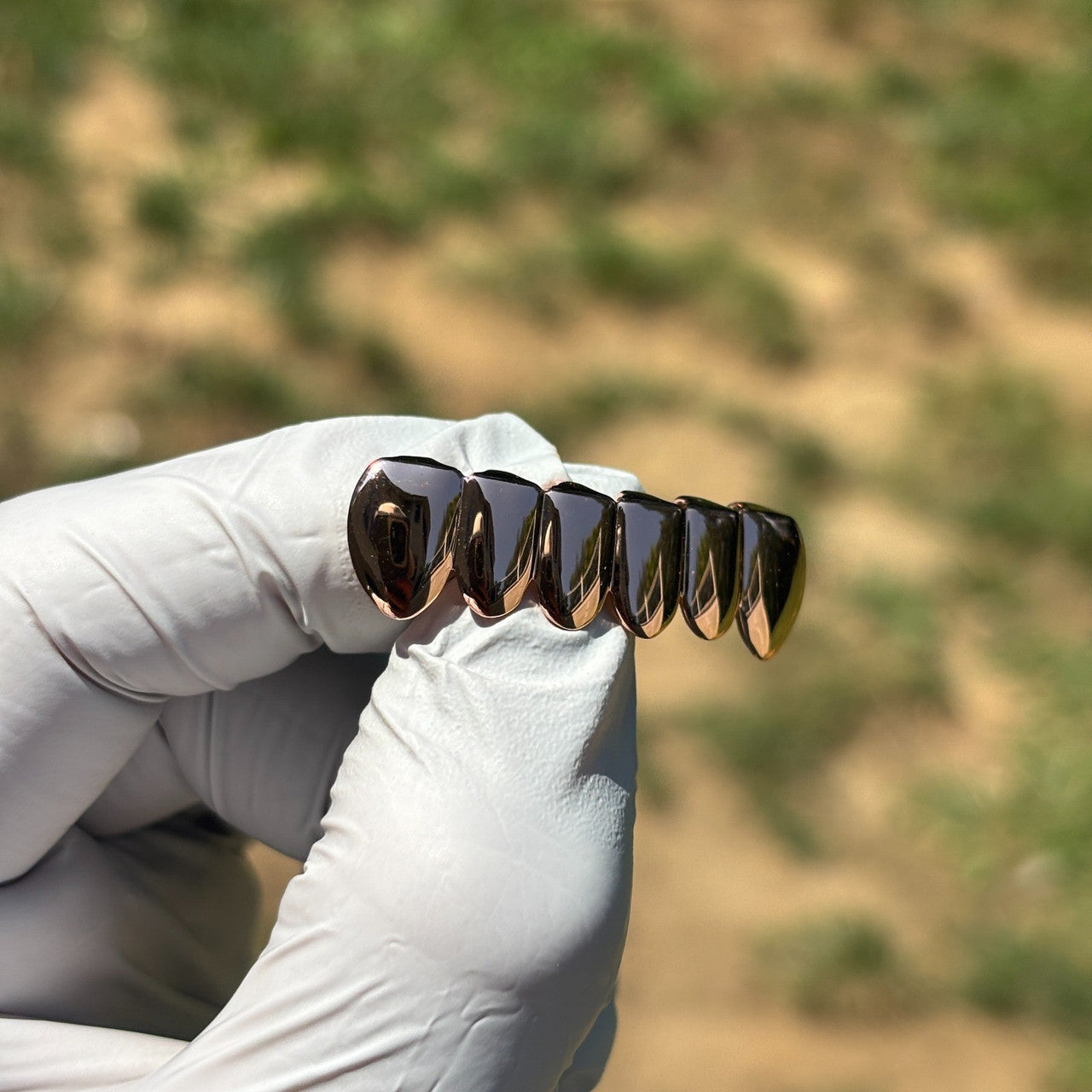 Our grillz are made out of SOLID 925 silver coated with Rose Gold! NOT PLATED