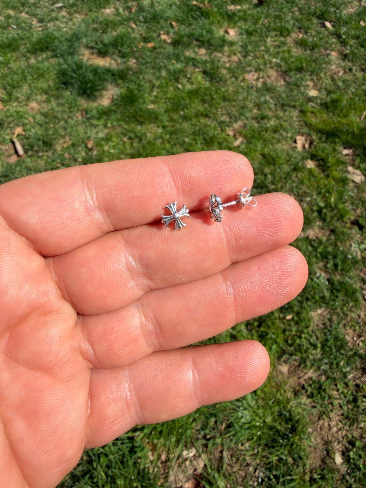 Hearts Of Chrome Cross Earrings - 925 Silver Oxidized - 8mm