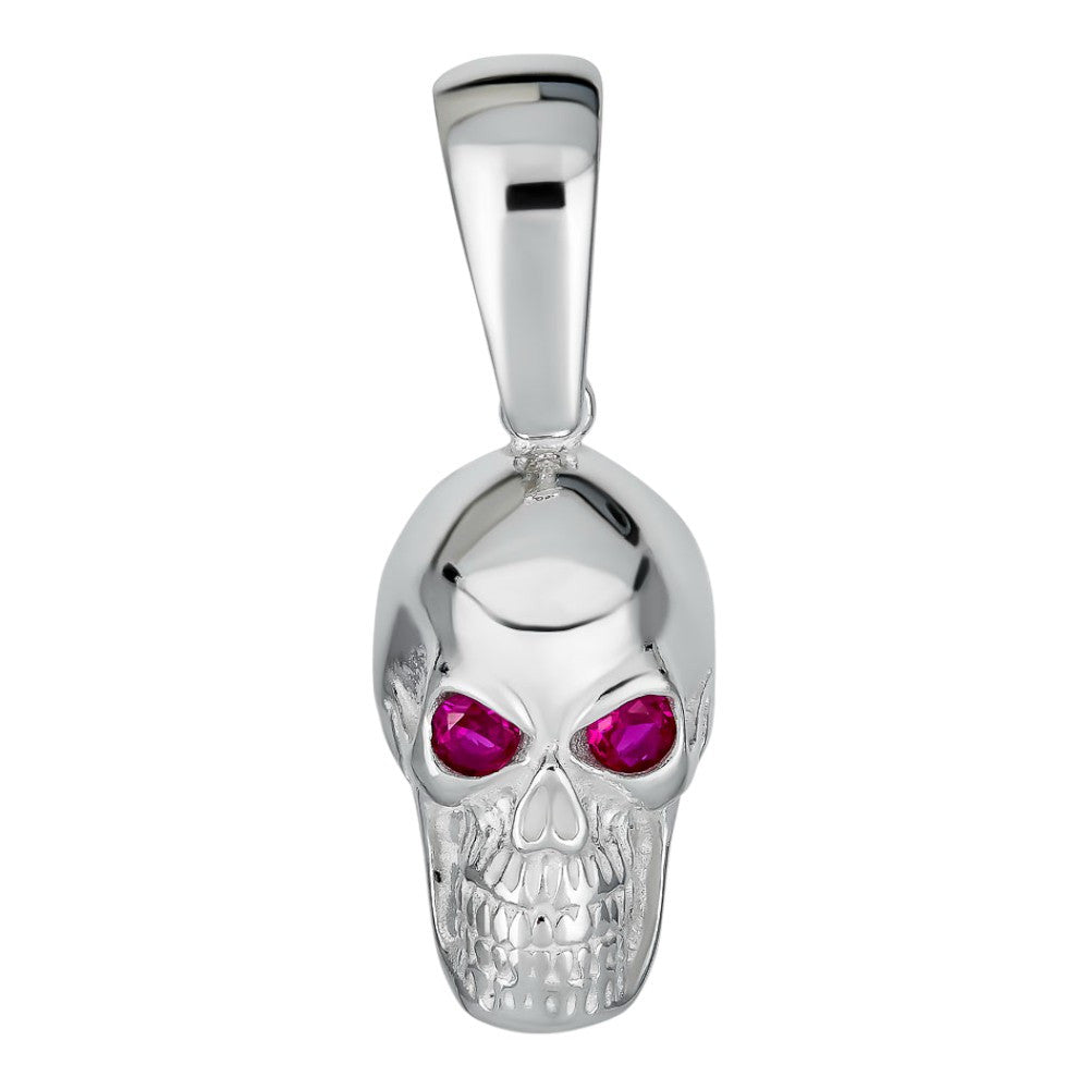 Gorgeous solid 925 silver men’s skull pendant w. red ruby eyes!